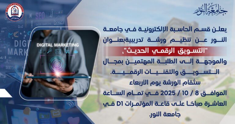جامعة النور هي واحدة من الجامعات الأهلية المرموقة في مدينة الموصل، العراق. تأسست بهدف تقديم تعليم عالي الجودة يواكب تطورات العصر ويلبي احتياجات سوق العمل المحلي والإقليمي. تسعى الجامعة لأن تكون مركزًا أكاديميًا متميزًا يجمع بين التعليم، البحث العلمي، وخدمة المجتمع.