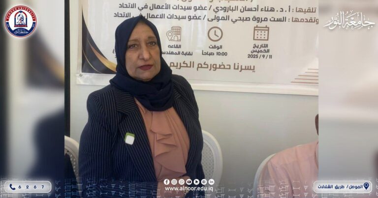 رئيسة قسم الأشعة في جامعة النور تلقي محاضرة عن التغير المناخي ضمن نشاط مشترك في محافظة نينوى