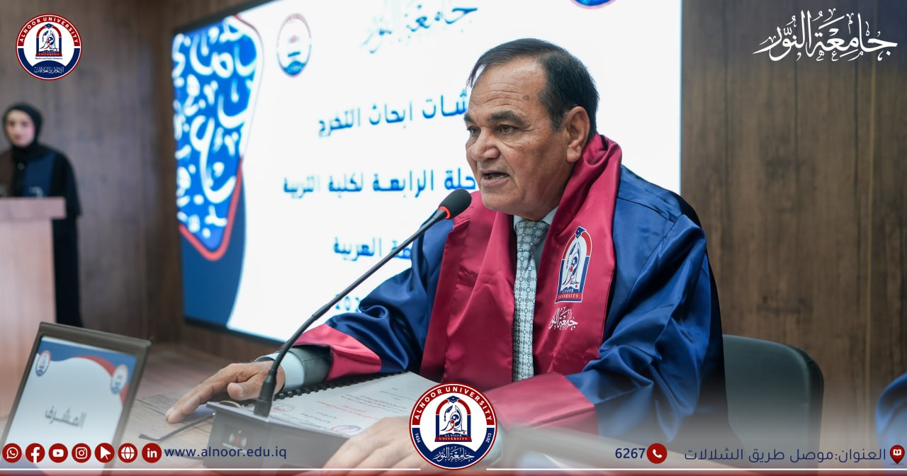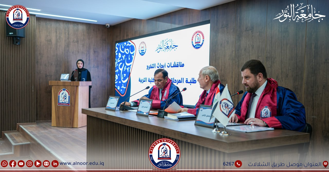 بحضور الاستاذ الدكتور ياسين طه الحجار رئيس جامعة النور وفي إطار السعي المتواصل لتعزيز مهارات البحث العلمي لدى الطلبة، شهد قسم اللغة العربية في كلية التربية – جامعة النور مناقشة مشاريع تخرج طلبة المرحلة الرابعة، بوصفها أحد المقررات الدراسية التي تُعد جزءًا من متطلبات التخرج.