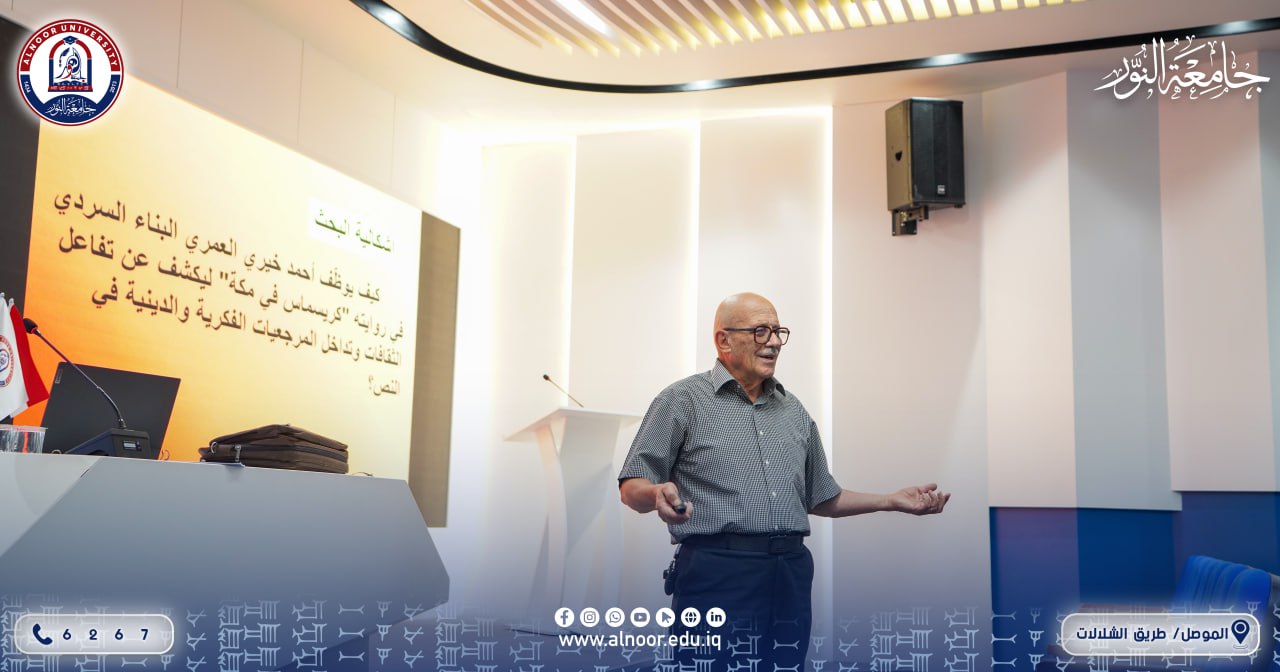 ضمن أنشطة قسم اللغة الإنكليزية في كلية التربية بجامعة النور في مجال التعليم المستمر، ألقى المدرس المساعد منهل إبراهيم عبد الله التدريسي في القسم، صباح يوم السبت الموافق 13 أيلول 2025، محاضرة بعنوان: البناء السردي وتفاعل الثقافات في رواية أحمد خيري العمري (كريسماس في مكة).