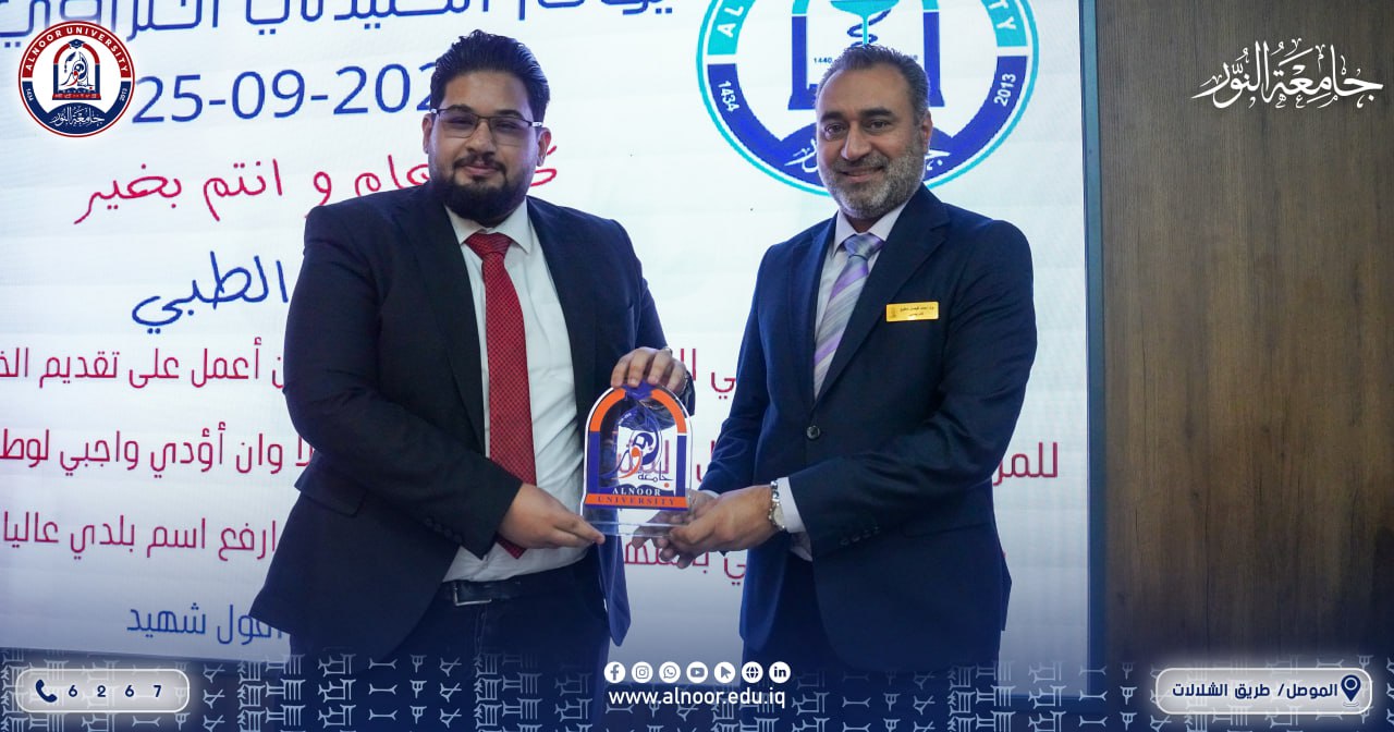 احتفت كلية الصيدلة في جامعة النور صباح يوم الخميس الموافق 25 أيلول 2025 بيوم الصيدلي، حيث أعدت منهاجاً احتفالياً خاصاً بالمناسبة دُعي إليه خريجو العام الدراسي 2024-2025.