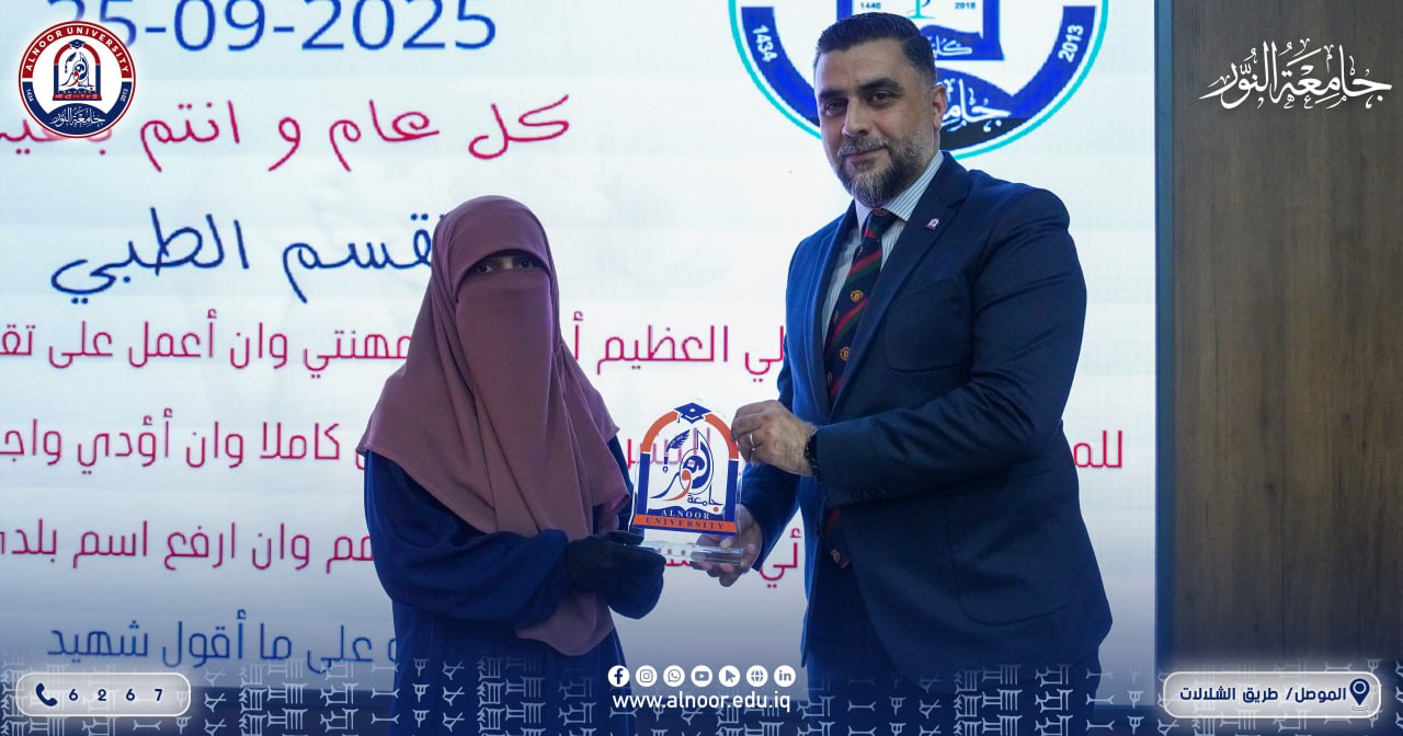 أشرف على الاحتفالية الأستاذ الدكتور عمر قتيبة الليلة عميد الكلية، وتم خلالها منح دروع جامعة النور إلى الخريجين الحاصلين على أعلى خمسة تسلسلات، تقديراً لتفوقهم وجهودهم العلمية.