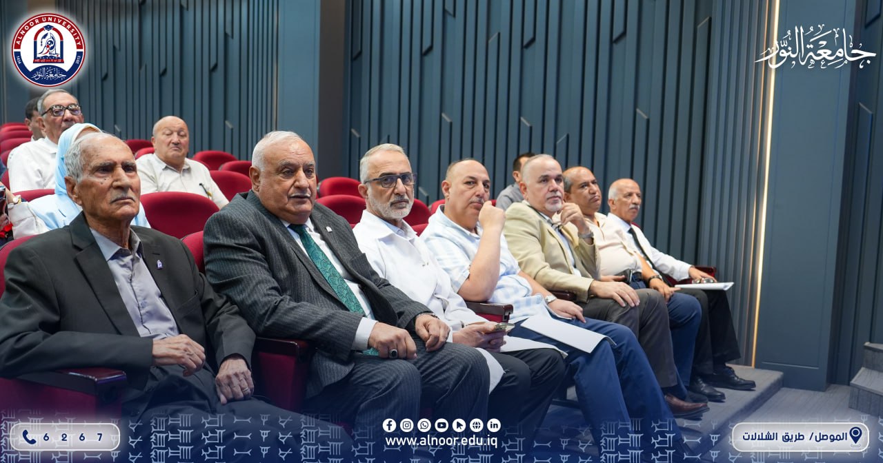 بتنظيم من مكتب المستشار العلمي لجامعة النور، وبحضور عمداء التربية والهندسة والتقنية الهندسية في الجامعة ألقى الأستاذ الدكتور منير سالم أحمد البدراني المستشار العلمي للجامعة، صباح يوم الأثنين الموافق 2025/9/29 محاضرة علمية بعنوان: (كيف تكتب عنوان بحث متميز. )