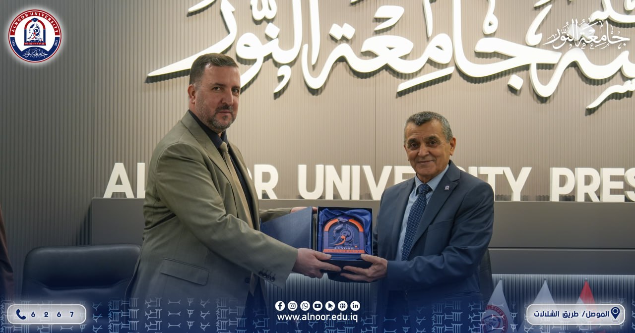 في إطار تعزيز أواصر التعاون العلمي والأكاديمي بين مؤسسات التعليم العالي في محافظة نينوى، جرى صباح يوم الإثنين الموافق 2025/10/27 توقيع مذكرة تعاون مشتركة بين جامعة النور وكلية الإمام الأعظم الجامعة.