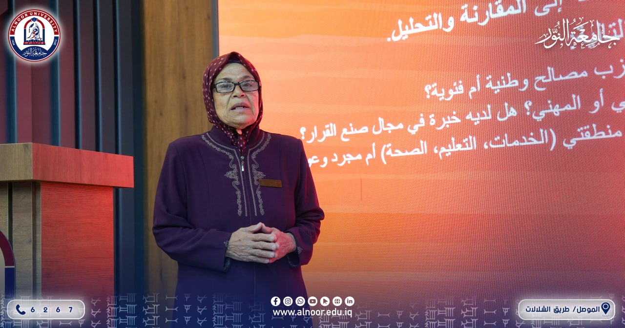 تلتها محاضرة بعنوان “ما قبل الصندوق: برامج التوعية الانتخابية كأداة لتمكين الناخبين من اتخاذ القرار الرشيد”، ألقتها الدكتورة ساجدة شريف حسين، مؤكدةً فيها على دور الوعي الانتخابي في تعزيز المشاركة الفاعلة للمرأة في العملية الديمقراطية.