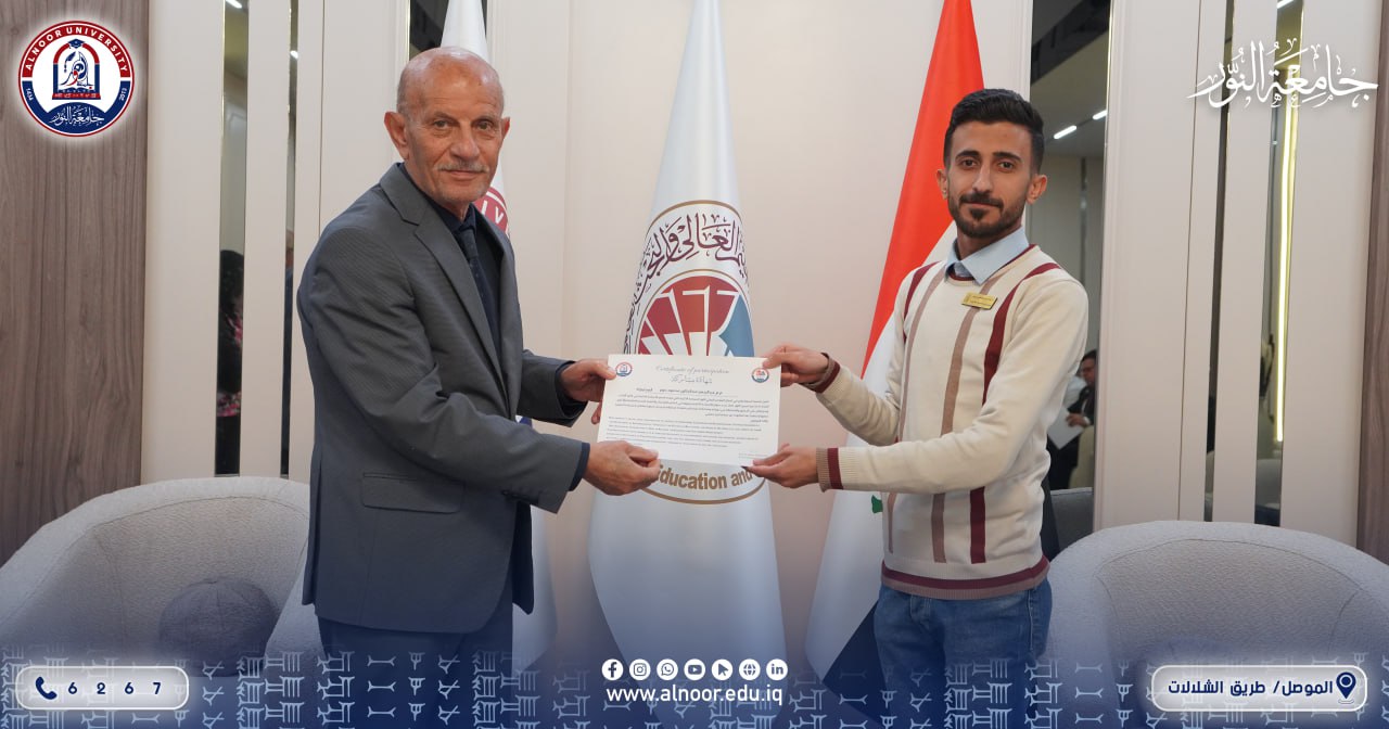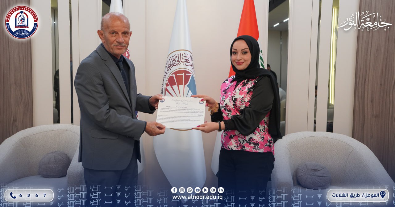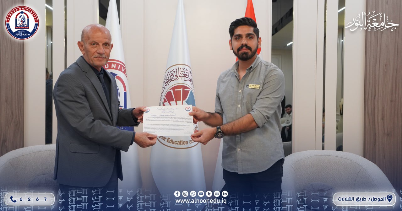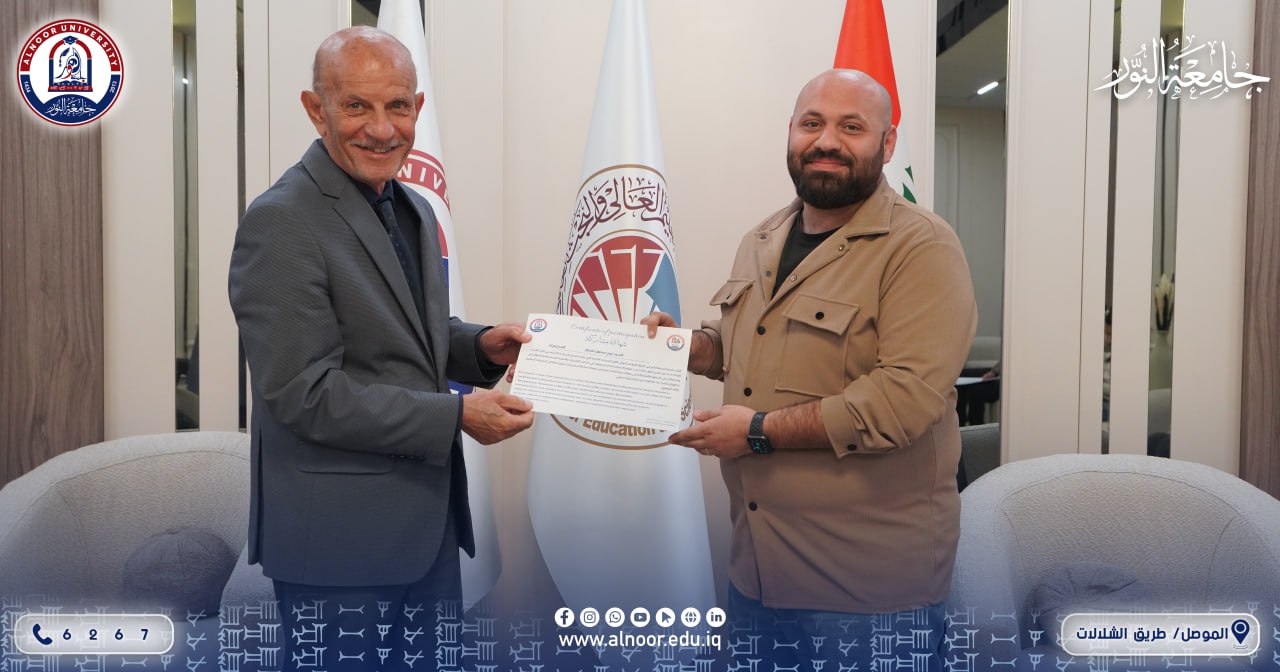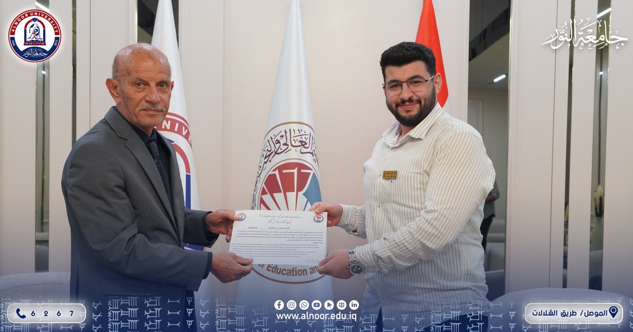 في التفاتة حانية من جامعة النور ،تم تكريم اللجان الداعمة لاعمال المؤتمر الدولي الأول للسياحة الآثارية ،في لقاء حضره الاستاذ الدكتور ياسين طه الحجار رئيس الجامعة،حيث سلم شهادة شكر وتقدير الى اعضاء اللجان الداعمة،بعد ان خصص الوقت الاول للحديث عن قوة الانتماء الى جامعة النور ومعنى العمل بروح الفريق الواحد ،مما انتج انشطة علمية متميزة وناجحة..