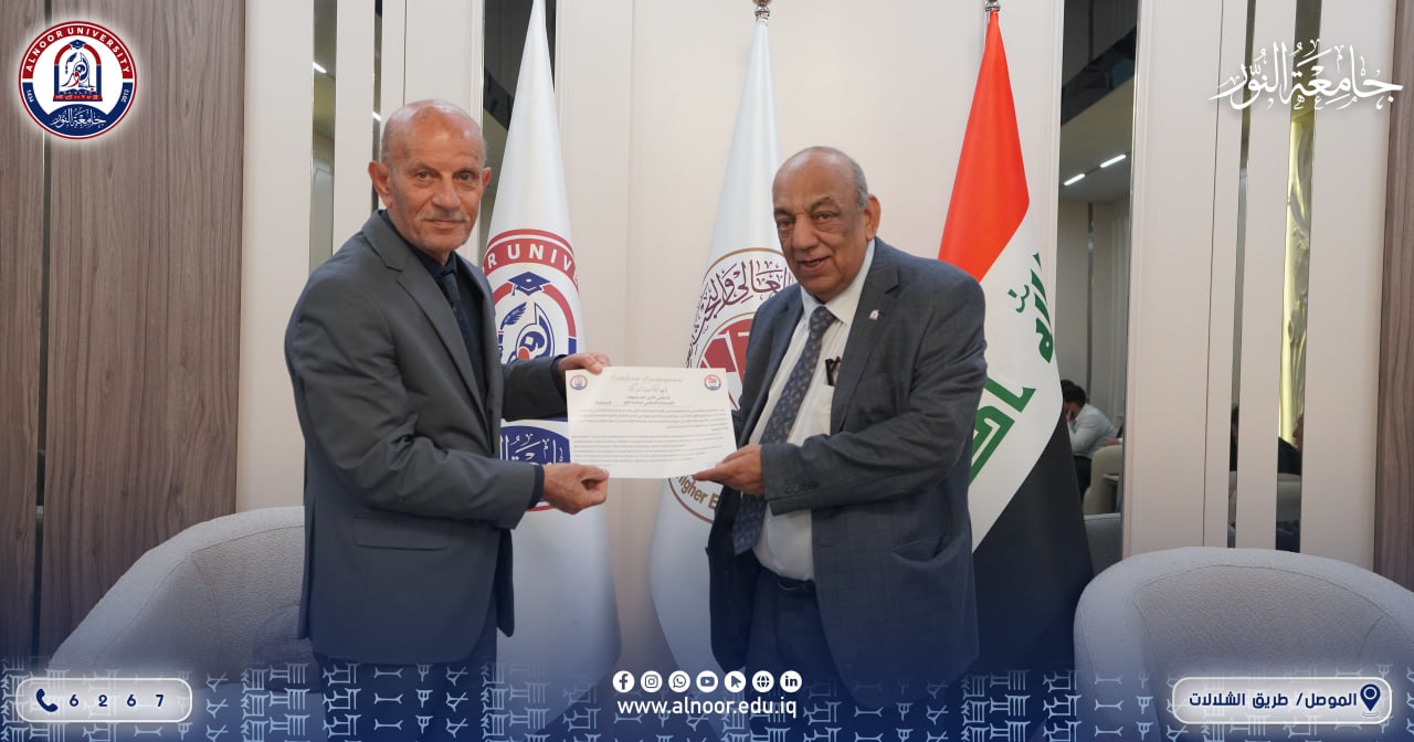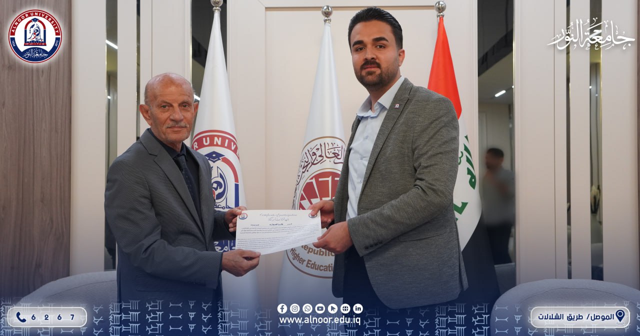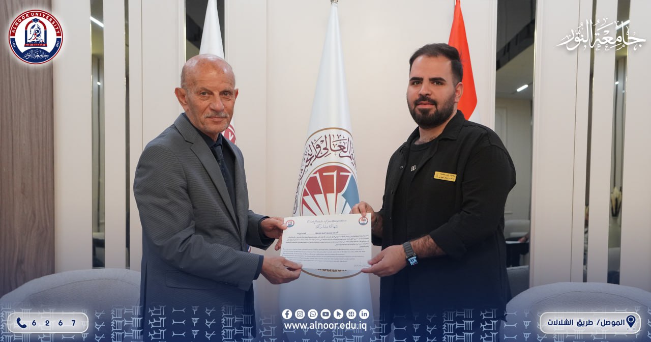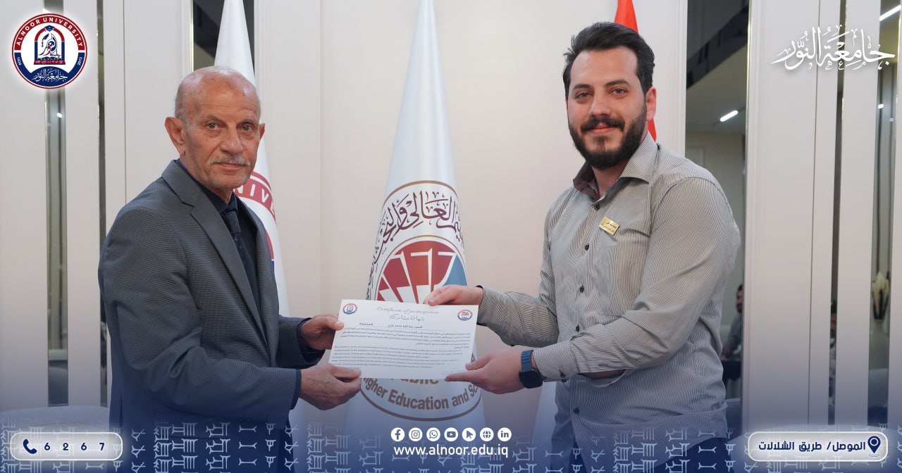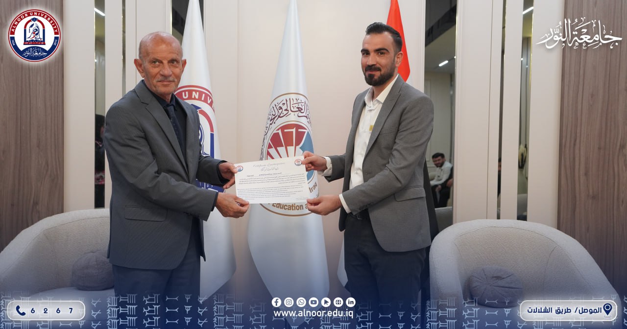 في التفاتة حانية من جامعة النور ،تم تكريم اللجان الداعمة لاعمال المؤتمر الدولي الأول للسياحة الآثارية ،في لقاء حضره الاستاذ الدكتور ياسين طه الحجار رئيس الجامعة،حيث سلم شهادة شكر وتقدير الى اعضاء اللجان الداعمة،بعد ان خصص الوقت الاول للحديث عن قوة الانتماء الى جامعة النور ومعنى العمل بروح الفريق الواحد ،مما انتج انشطة علمية متميزة وناجحة..