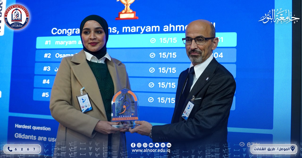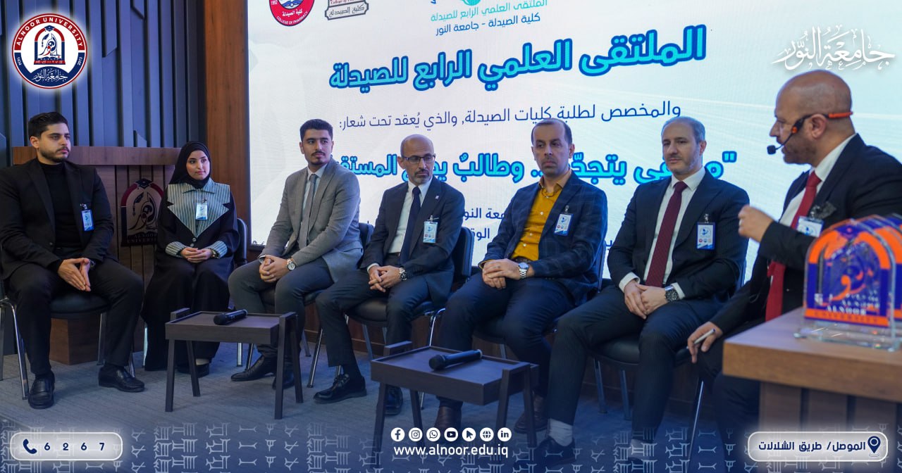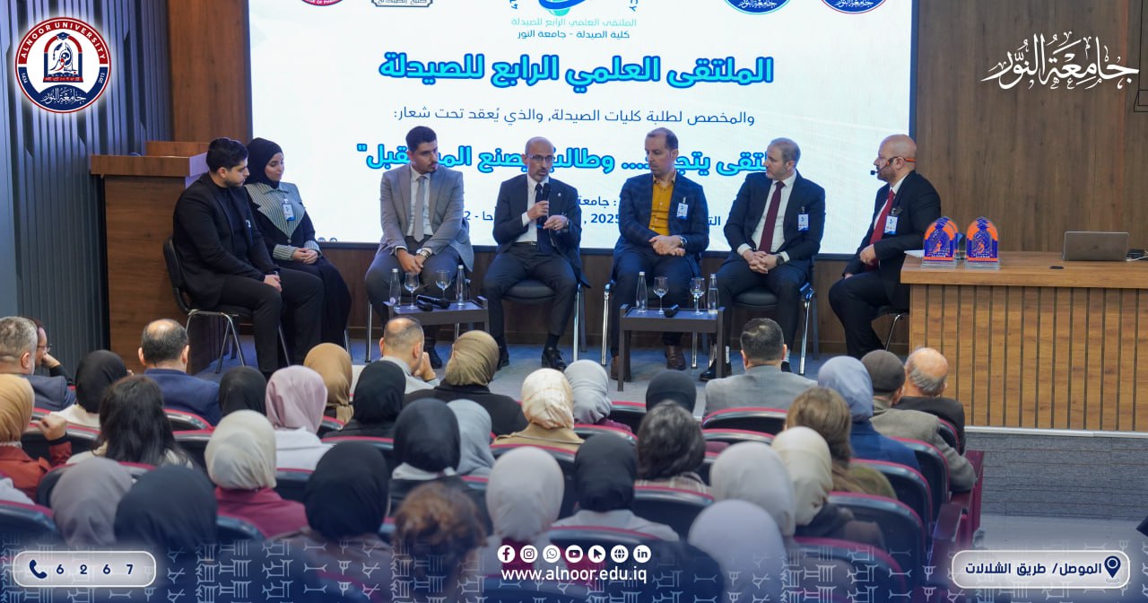 تحت شعار (ملتقى يتجدد وطالب يصنع المستقبل) أقامت كلية الصيدلة في جامعة النور صباح يوم الثلاثاء الموافق 2025/12/9 الملتقى العلمي الرابع للصيدلة بمشاركة كليات الصيدلة في جامعات النور والموصل ونينوى..