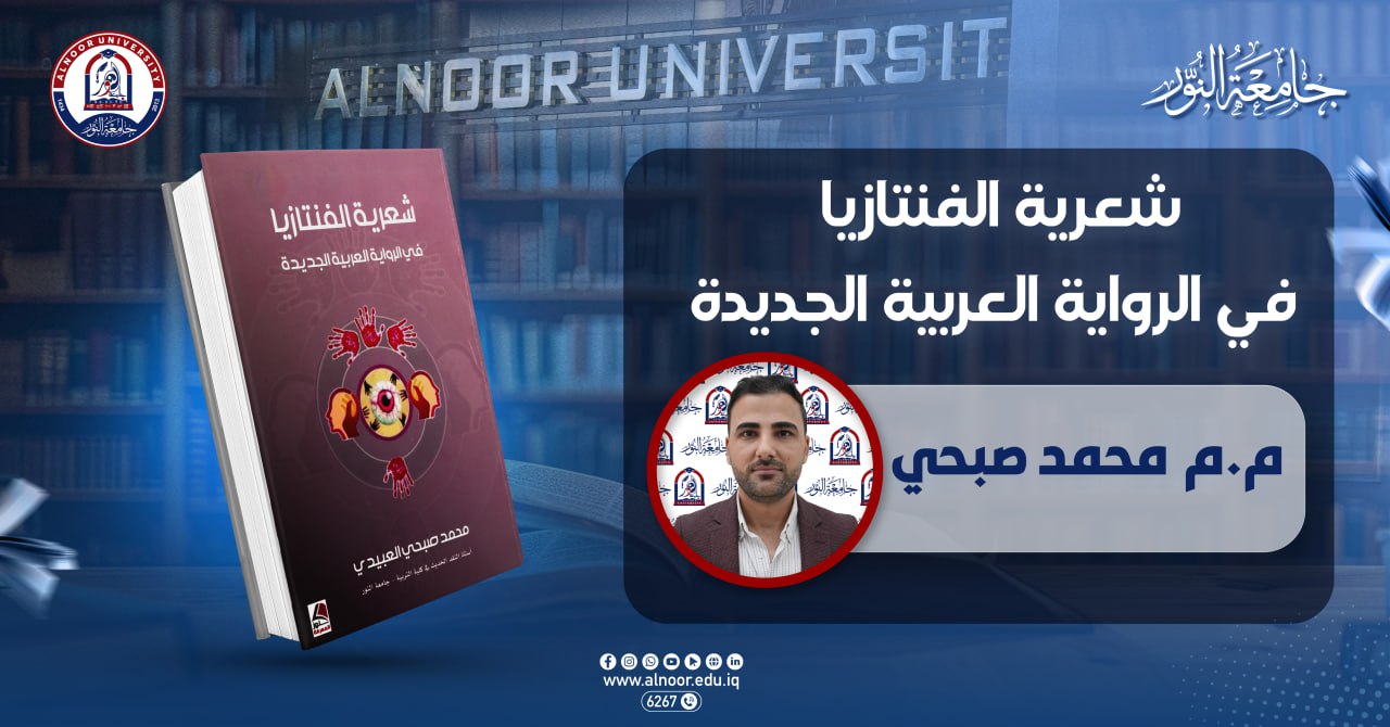صدر حديثًا للتدريسي محمد صبحي العبيدي، المدرس المساعد في قسم اللغة العربية – كلية التربية بجامعة النور، كتابٌ نقدي جديد حمل عنوان (شعرية الفنتازيا في الرواية العربية الجديدة).