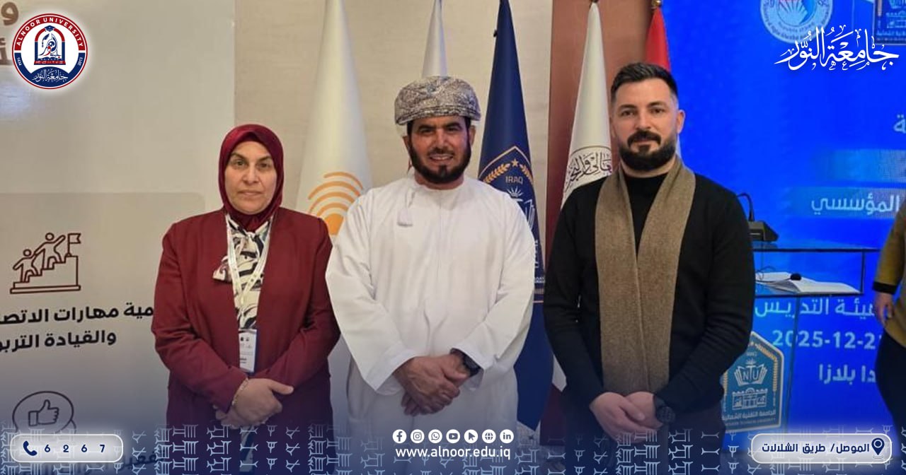 ضمن الجهود المستمرة لجامعة النور في دعم التطوير الأكاديمي وبناء القدرات البشرية، شارك عدد من تدريسيي الجامعة في برنامج «إعداد مدرب معتمد في تنمية المهارات اللينة» الذي أقامته الجامعة التقنية الشمالية للمدة من 21 إلى 24 كانون الأول 2025.بحضور الاستاذة الدكتورة علياء عباس العطار رئيسة الجامعة