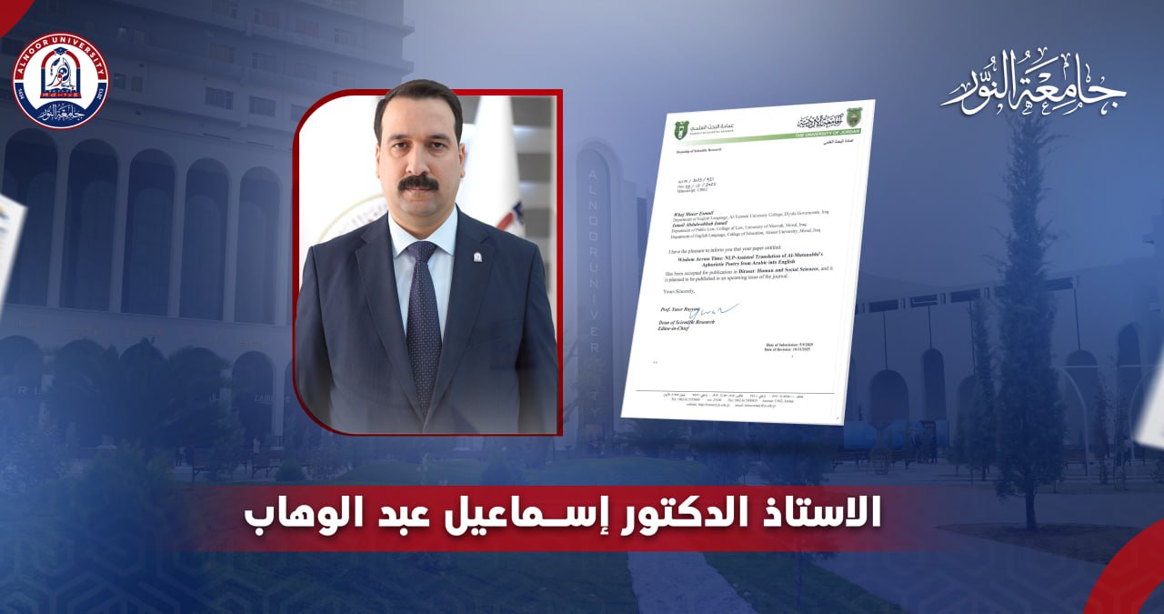 قبول بحث علمي للمساعد العلمي لرئيس جامعة النورفي مجلة “Dirasat: Human and Social Sciences” الصادرة عن الجامعة الأردنية