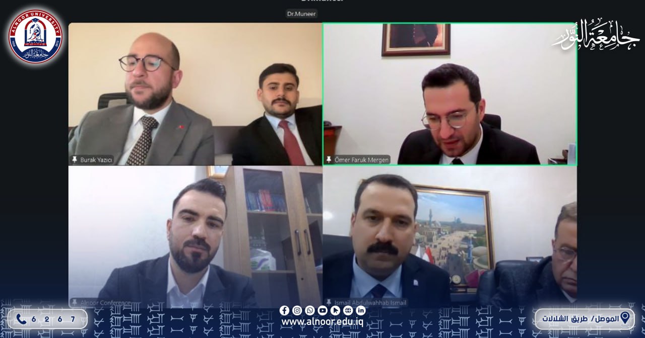 تم عقد اجتماع الكتروني بين جامعة النور وممثلين عن مؤسسة TIKA التركية جرى خلاله بحث آفاق التعاون الأكاديمي والتنموي، ومناقشة المشاريع البحثية العلمية والثقافية المشتركة بين جامعة النور وهذه المؤسسة.ويأتي هذا اللقاء الذي شارك فيه الأستاذ الدكتور اسماعيل عبدالوهاب اسماعيل، مساعد رئيس الجامعة للشؤون العلمية والاستاذ الدكتور منير سالم البدراني المستشار العلمي والأستاذ المساعد الدكتور محمد زهير زيدان، مدير العلاقات الثقافية، ضمن إطار تعزيز الشراكات الدولية، وتبادل الخبرات، ودعم المبادرات البحثية التي تسهم في خدمة التنمية المستدامة وبناء القدرات العلمية.