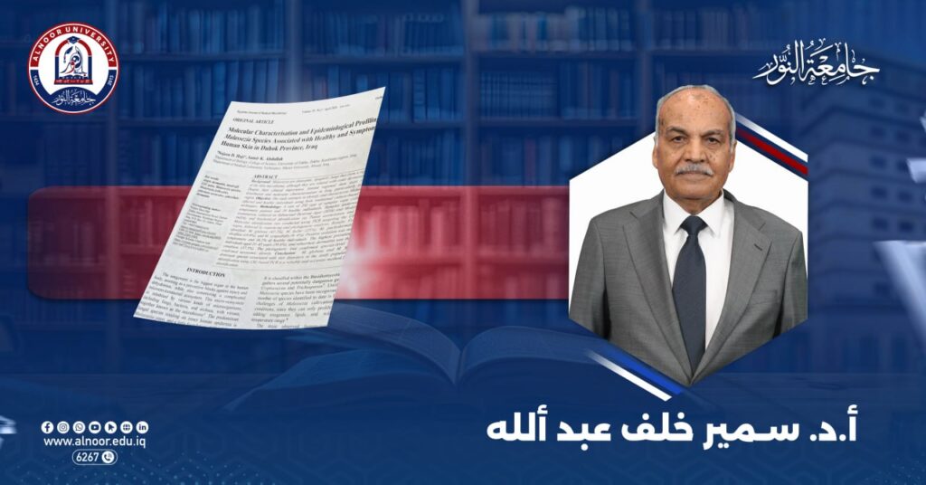 تم نشر بحث مشترك للاستاذ الدكتور سمير خلف عبدالله التدريسى فى كلية التقنيات الصحية والطبية في جامعة النور والتدريسية نوجين دارا حاجي من كليه العلوم جامعه زاخو تحت عنوان Molecular characterisation and epidemiological profiling of Malassezia species associated with healthy and symptomatic human skin in Duhok province,Iraq.في المجلة المصرية للأحياء المجهرية الطبية Egyptian Journal of Medical Microbiology vol.35,no2,year 2026 وهي من ضمن مستوعبات سكوبس