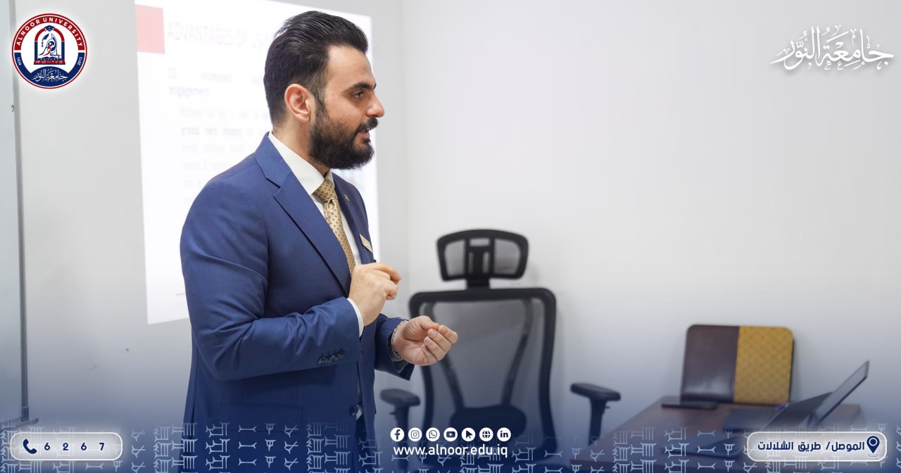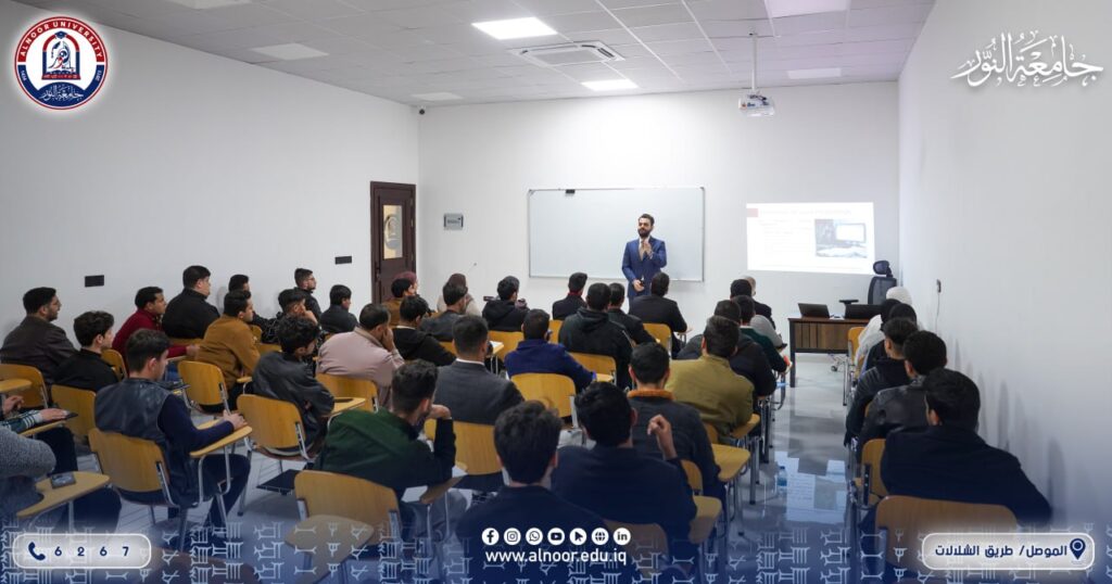 وتناول محاورها الدكتور هيثم ثامر عبد القادر، المدرس في القسم، حيث استعرض أسس إعداد العروض التقديمية الاحترافية لمشاريع ريادة الأعمال، وآليات عرض الأفكار الابتكارية بشكل فعّال، بما يسهم في تعزيز مهارات الطلبة وتنمية قدراتهم في مجال الابتكار وريادة الأعمال.