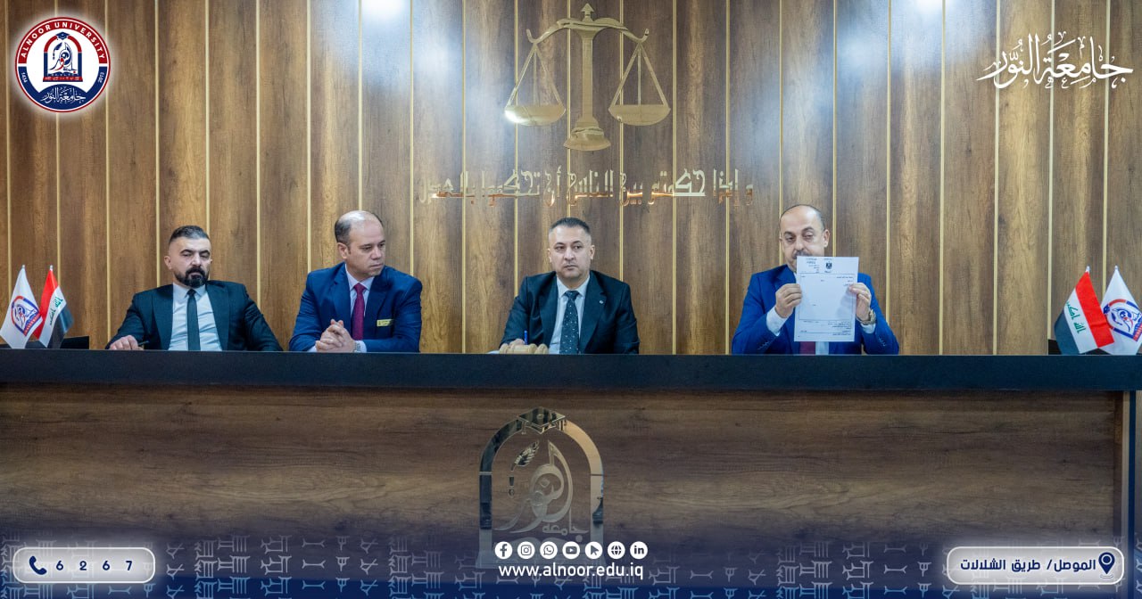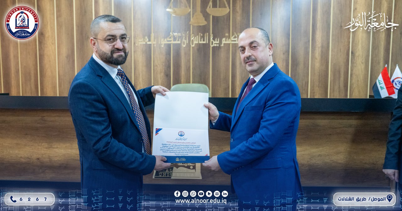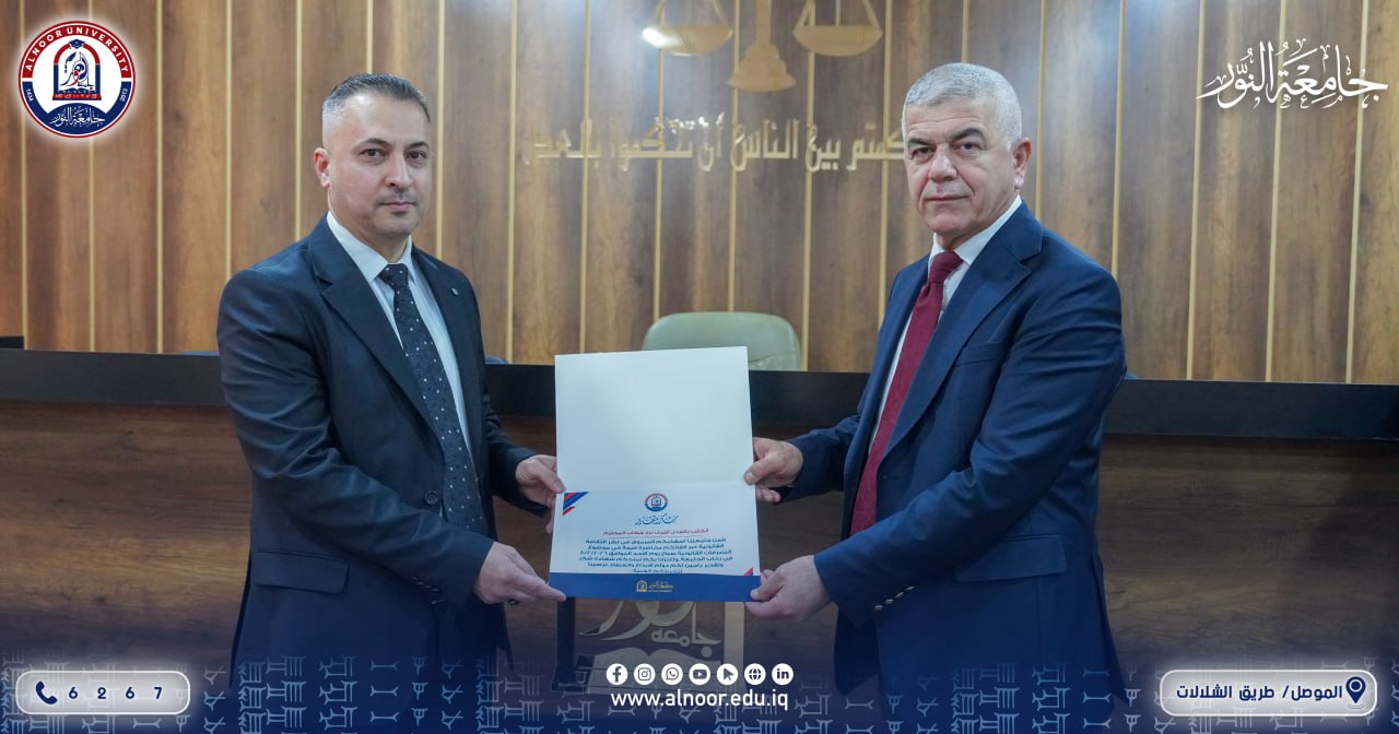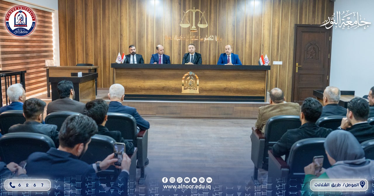 بحضور الدكتور بشار محمود علي رئيس مجلس ادارة جامعة النور وضمن اسبوع الابداع والريادة الذي يقام في جامعة النور نظّم قسم القانون في كلية القانون والعلوم السياسية صباح يوم الأحد محاضرة علمية تناولت موضوع تنظيم التصرفات القانونية، قدّمها الكاتبان بالعدل أشرف نزار خطاب وزكريا جمال أحمد، حيث استعرضا آليات تصديق الوكالات والإنذارات القانونية وأنواعها، مع بيان أهم الإجراءات المتبعة في تنظيمها ودورها في حفظ الحقوق وتوثيق التعاملات القانونية.
