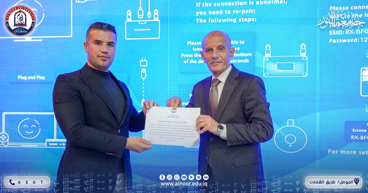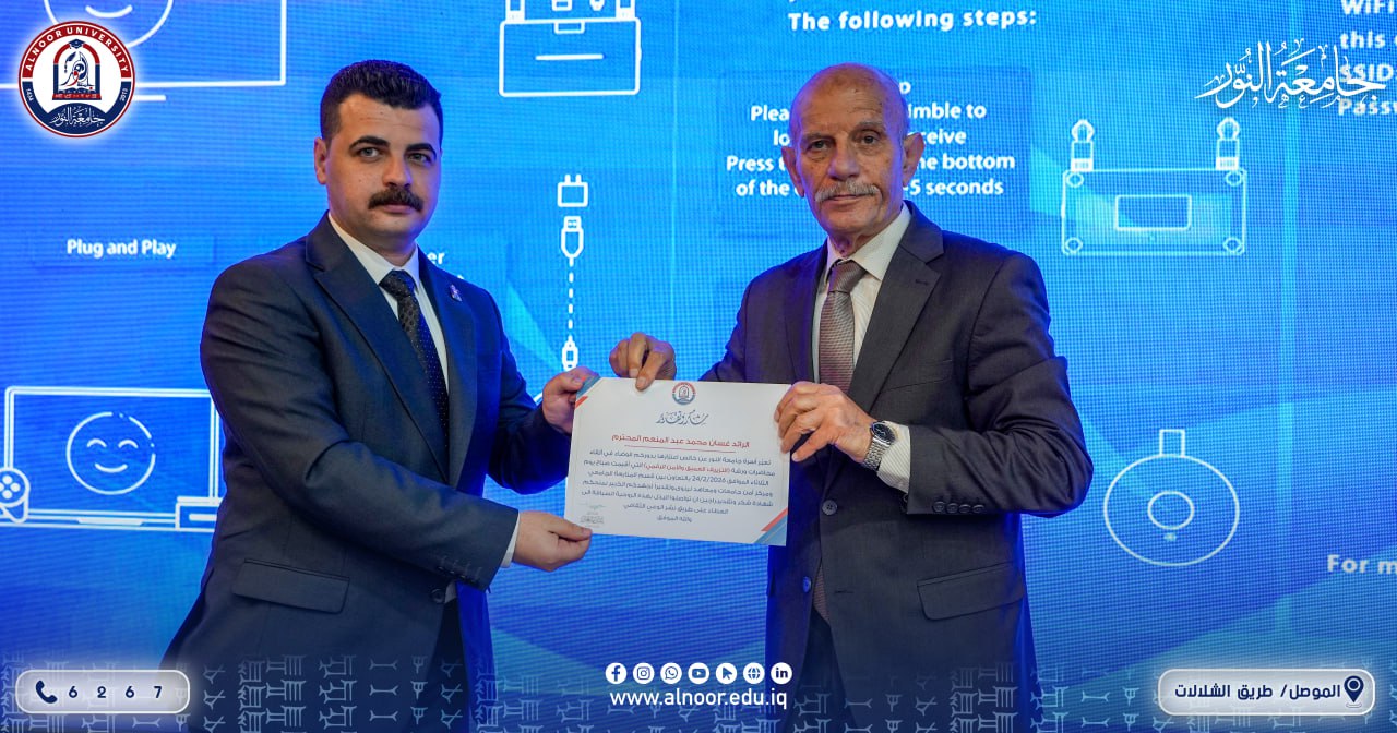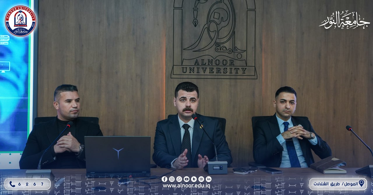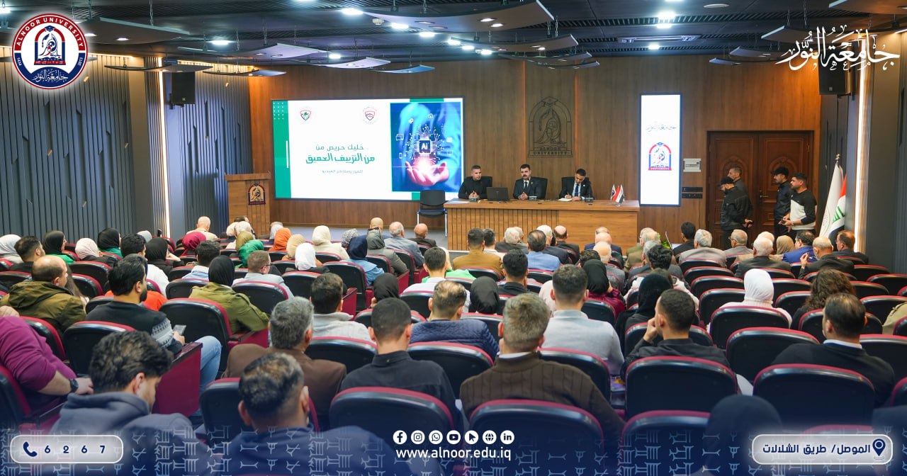 بحضور الأستاذ الدكتور ياسين طه الحجار رئيس جامعة النور شهدت الجامعة صباح يوم الثلاثاء الموافق 2026/2/24 تنظيم ورشة علمية متخصصة بعنوان (التزييف العميق والأمن الرقمي)، أقامها قسم المتابعة الجامعي في رئاسة الجامعة بالتعاون مع مركز أمن جامعات ومعاهد محافظة نينوى.