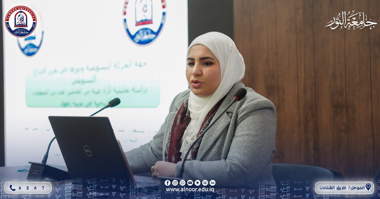 نظم قسم تقنيات إدارة الأعمال في جامعة النور صباح يوم الأربعاء الموافق 2026/2/25 حلقة نقاشية بعنوان (خفة الحركة التسويقية في تعزيز الإبداع التسويقي)، وذلك بحضور الأستاذ الدكتور موفق السيدية عميد كلية التقنيات الإدارية.