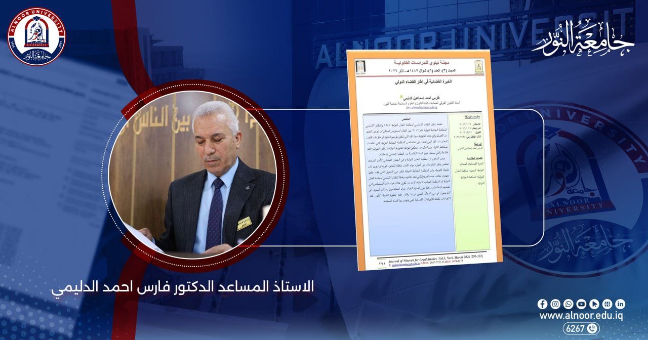 ويأتي هذا الإنجاز العلمي ليؤكد حضور تدريسيي جامعة النور في المحافل الأكاديمية، وإسهامهم الفاعل في إثراء البحث العلمي القانوني على المستويين المحلي والدولي.