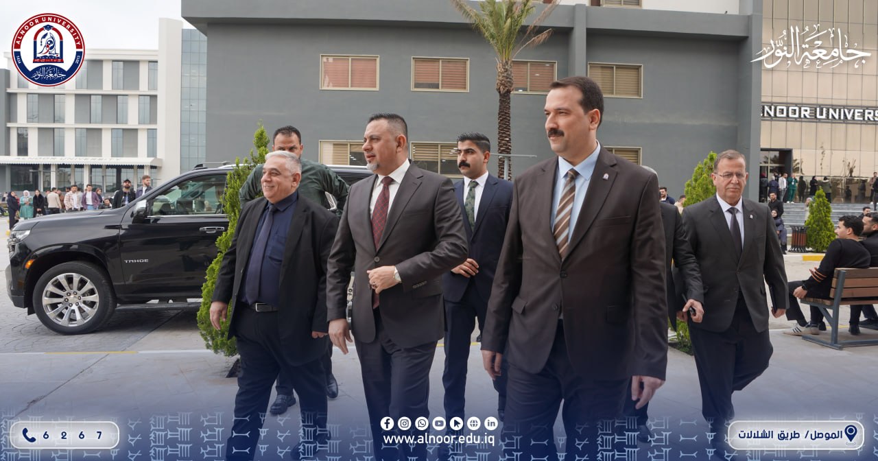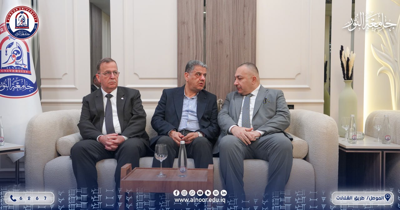 زارَ جامعةَ النور ظهرَ يومِ السبت الموافق 2016/3/28 الأستاذُ خالدُ عبدُ الكريم العبيدي، النائبُ الفنيُّ لمحافظِ نينوى، حيثُ التقى بالأستاذِ الدكتور ياسين طه الحجار رئيسِ الجامعة، والدكتور بشار محمود علي رئيسِ مجلسِ إدارة الجامعة، وجرى خلال اللقاء حوارٌ تناول واقعَ الجامعة وآفاقَ تطويرها.