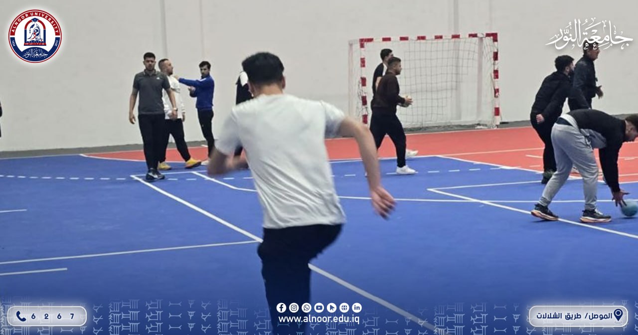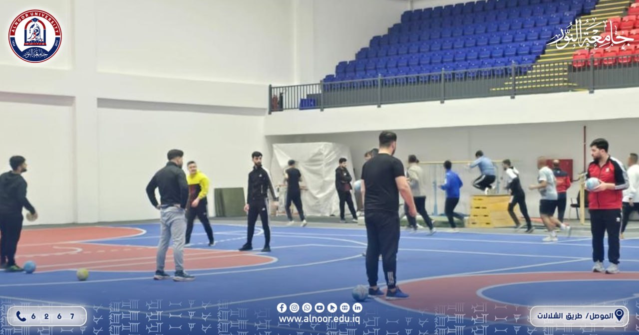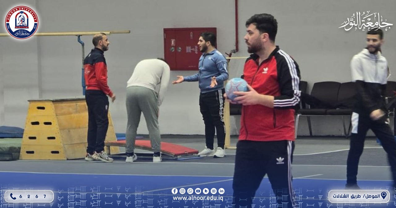 داخل القاعة الرياضية المغلقة في جامعة النور، تتواصل المحاضرات التطبيقية لطلبة قسم التربية البدنية وعلوم الرياضة، في أجواء حيوية تعكس روح النشاط والانضباط.