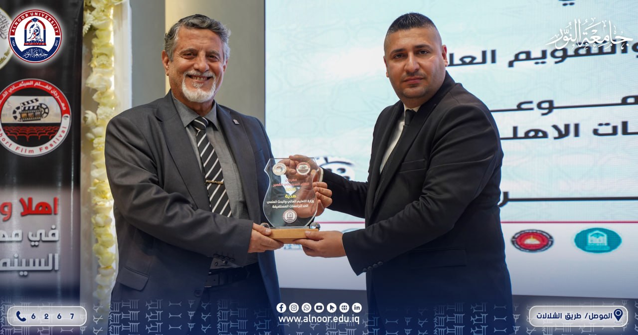 وفي ختام الاجتماع، تم منح جامعة النور درع الاستضافة، حيث تسلّمه الأستاذ المساعد الدكتور نذير عبدالغني العزاوي التدريسي في كلية الفنون التطبيقية في جامعة النور ، تقديرًا لدور الجامعة البارز في دعم الأنشطة الفنية ومساهمتها الفاعلة في إنجاح الفعاليات الجامعية.