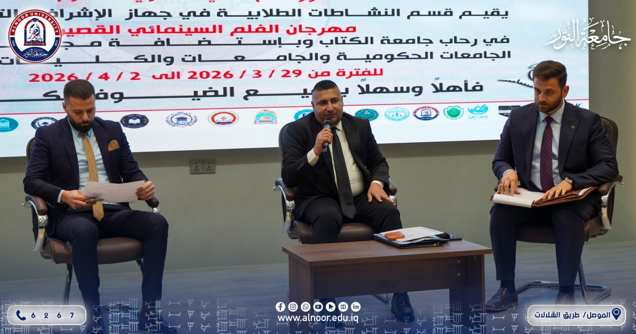 شاركت جامعة النور في الاجتماع الفني الخاص بمسابقة الفيلم القصير، والذي احتضنته جامعة كركوك، بمشاركة ممثلين عن أكثر من 50 جامعة عراقية.