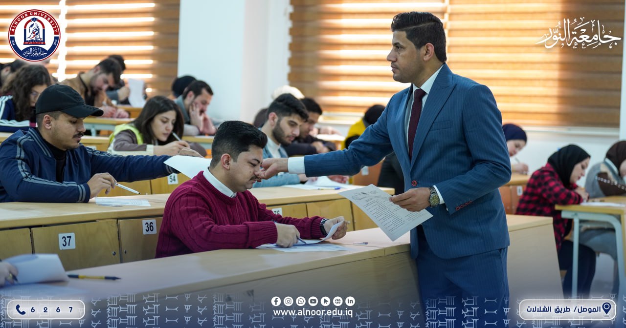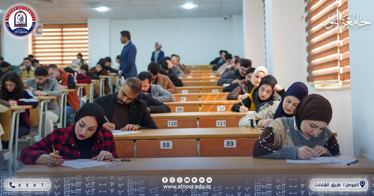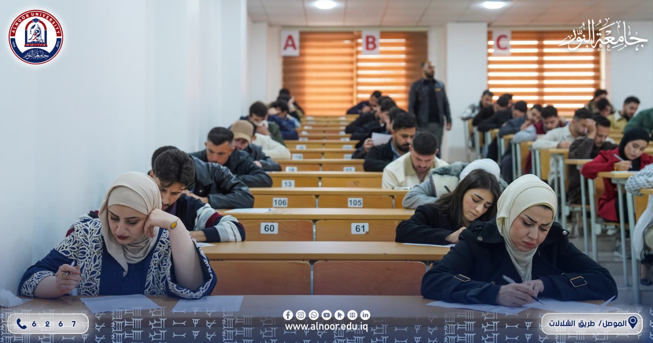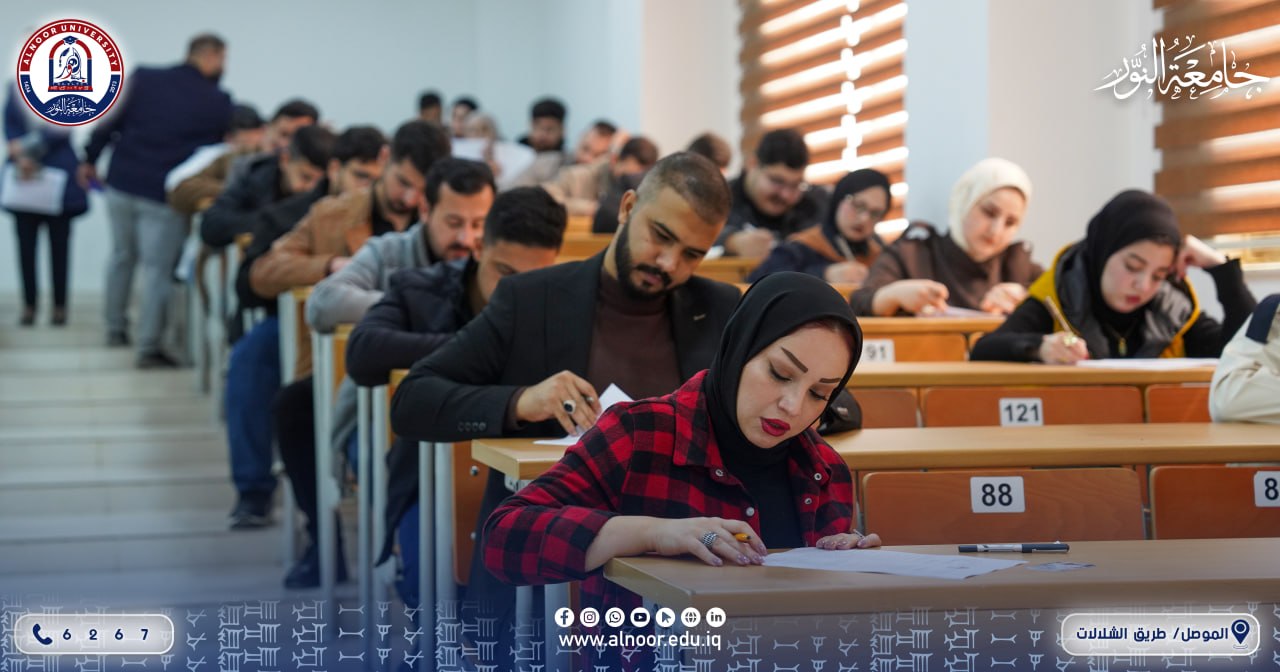 بحضور الأستاذ الدكتور ياسين طه الحجار، رئيس جامعة النور، يواصل طلبة المرحلتين الثانية والثالثة في قسم الإعلام الرقمي بكلية الآداب أداء الامتحانات المشتركة لليوم الثاني، وذلك بإشراف جامعة ذي قار، وسط أجواء تنظيمية متميزة وانسيابية عالية.