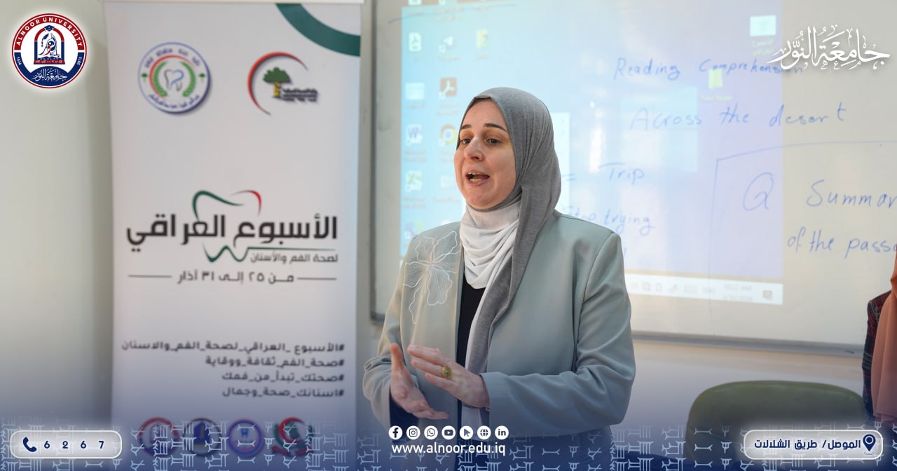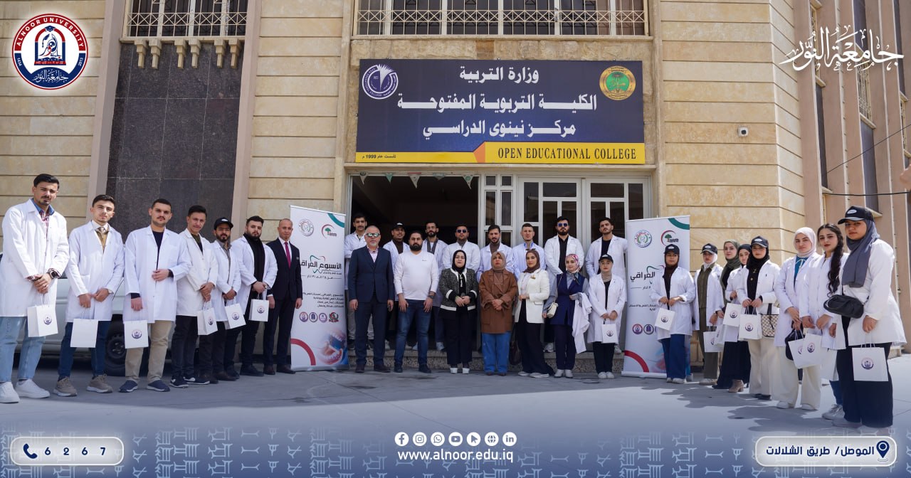 ضمن الاسبوع العراقي لطب الاسنان وبإشراف الاستاذ الدكتور طلال السلمان عميد كلية طب الاسنان في جامعة النور نظمت الكلية صباح يوم الاثنين الموافق 2026/3/30 وهو اليوم الاخير لبرنامجها التوعوي زيارة ميدانية لفريق منتخب يضم اربعة من تدريسيي الكلية مع فريق من دائرة صحة نينوى و38طالباً وطالبة من الكلية الى الكلية التربوية المفتوحة حيث استقبلتهم مديرة الكلية الدكتورة عبير مفكر….