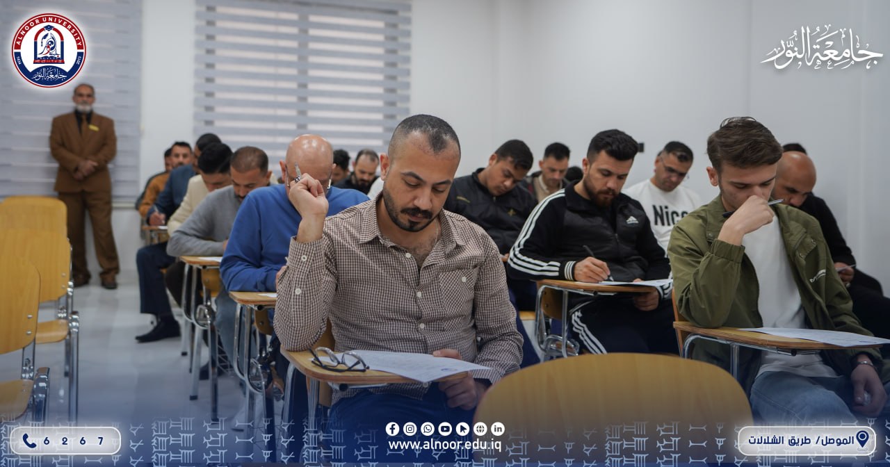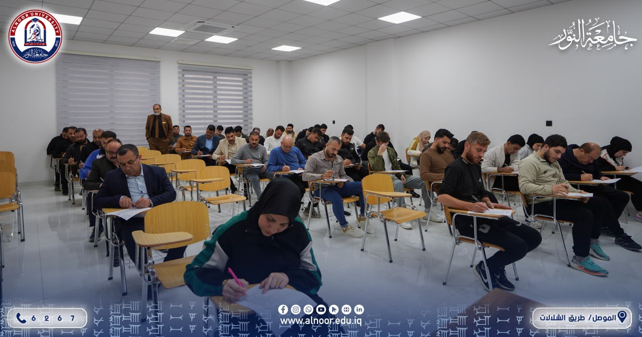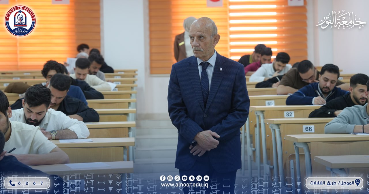 جرت صباح يوم الإثنين الموافق 2026/4/6 الامتحانات التجريبية للطلبة في جامعة النور بحضور الاستاذ الدكتور ياسين طه الحجار رئيس الجامعة، حيث أشرف الاستاذ الدكتور كامل علي عبد المحسن عميد الكلية التقنية الهندسية على طلبة المراحل مافوق الاولى في قسم هندسة الامن السيبراني وهم يؤدون الامتحانات التجريبية تمهيدا لخوض الامتحانات التقويمية،وجرت الامتحانات المشتركة مع الجامعة التقنية الشمالية لطلبة المرحلة الثانية في كلية التقنيات الادارية باشراف الاستاذ الدكتور موفق السيدية عميد الكلية وفريق من الجامعة التقنية الشمالية ،كما جرت الامتحانات التجريبية تمهيدا للامتحانات المشتركة لطلبة المراحل فوق الاولى في قسم التربية االبدنية وعلوم الرياضة في كلية التربية.