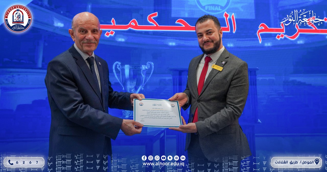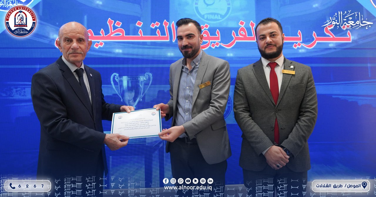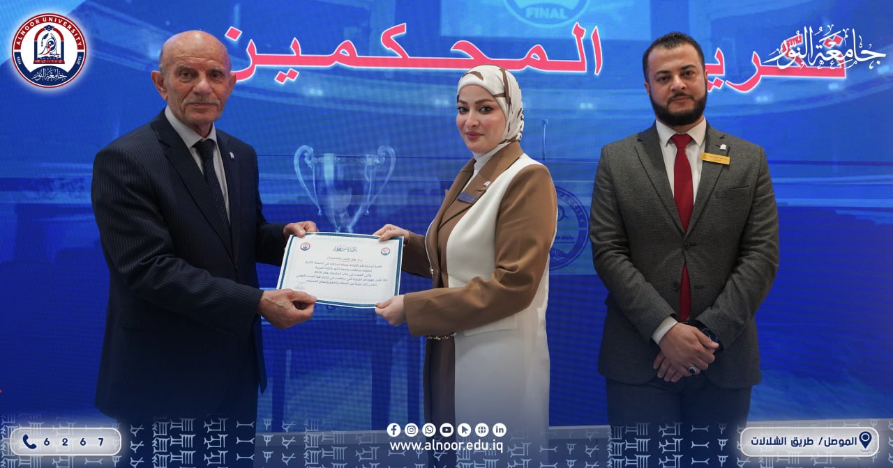 بحضور الاستاذ الدكتور ياسين طه الحجار رئيس جامعة النور أقام قسم النشاطات الطلابية في الجامعة مع شعبه في الكليات صباح يوم الإثنين دورة وبطولة مناظرات جامعة النور بإشراف المدرس المساعد سعد صالح ذياب،حيث تمت التصفيات بين الفرق المتنافسة امام لجان التحكيم ،بعدها اقيم حفل ختامي القى فيه رئيس الجامعة ومنظم المناظرات كلمتين متتاليتين بعدها اعلنت نتائج المنافسات وتم توزيع الاوسمة والشهادات على الفريق الفائز والطلبة المتناظرين ولجان المناظرات.