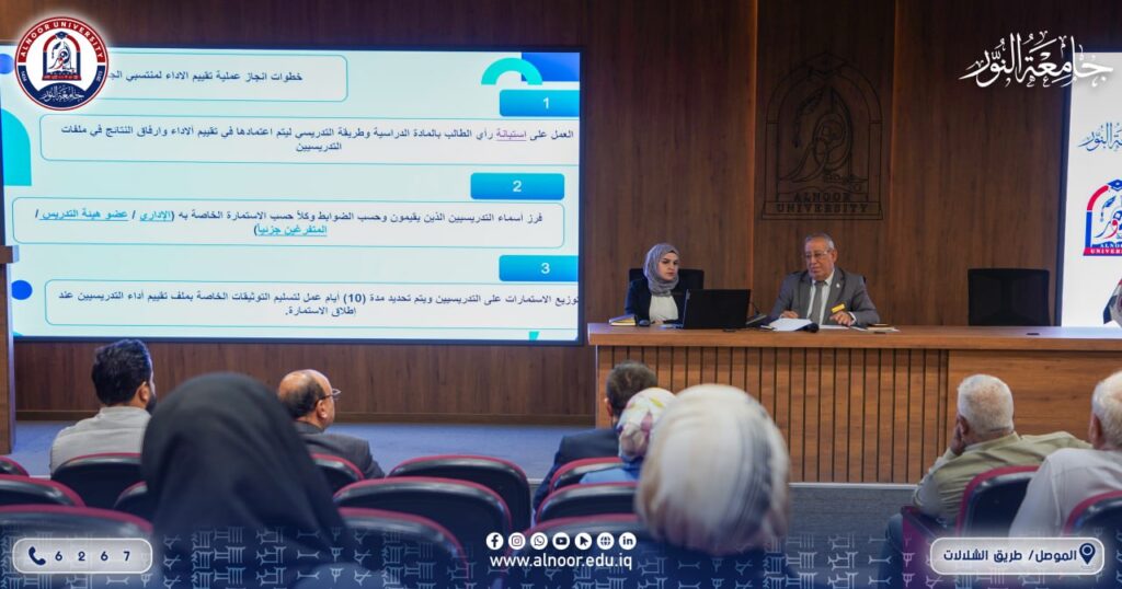 يواصل قسم ضمان الجودة والأداء الجامعي في رئاسة جامعة النور أنشطته الميدانية، إذ نظم صباح يوم الأربعاء الموافق 2025/10/1 ورشة