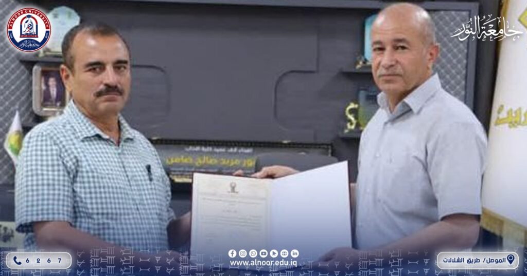 شارك الاستاذ المساعد الدكتور ناظم يونس صالح التدريسي في جامعة النور في عضوية لجنة مناقشة طالب الماجستير عدنان لطف الله