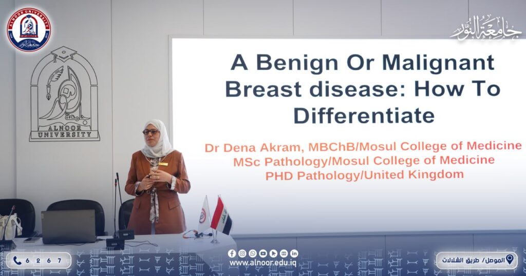 نظم قسم تقنيات البصريات في كلية التقنيات الصحية والطبية بجامعة النور محاضرة علمية بعنوان (مرض الثدي.. حميد أم خبيث؟ وكيف