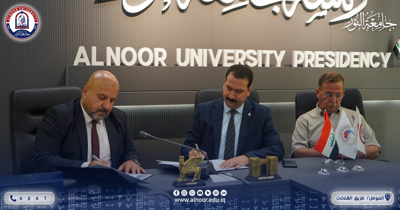 As part of Alnoor University's commitment to community service and its engagement with initiatives aimed at preserving cultural heritage, a scientific and academic Memorandum of Understanding was signed today between Alnoor University and the Lamassu Organization for Culture.