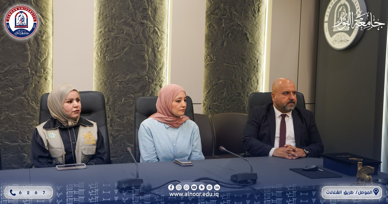 The signing ceremony was attended by Assistant Professor Dr. Mohammed Zuhair, Director of Cultural Relations at Al-Noor University; Dr. Hind Fakhri, Advisor to the Lamassu Organization; and several members of the organization.