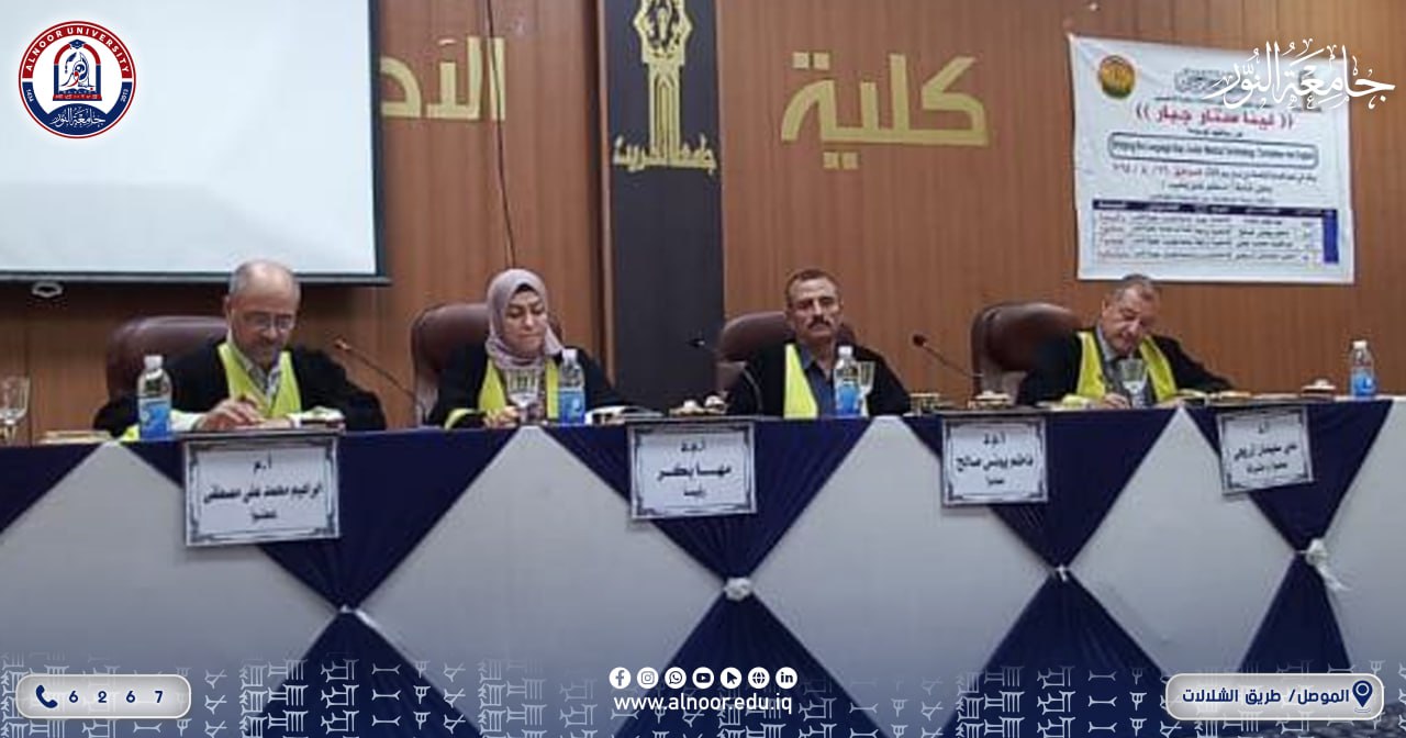 Assistant Professor Dr. nazim younis salihfaculty member at the College of arts a faculty member at the College of Arts at Al-Noor University, participated on the morning of Tuesday, 26/8/2025, as a member of the defense committee for the Master’s student Lina Star Jabbar Maktaa on her thesis submitted to the College of Arts at the University of Tikrit / Department of Translation, titled: