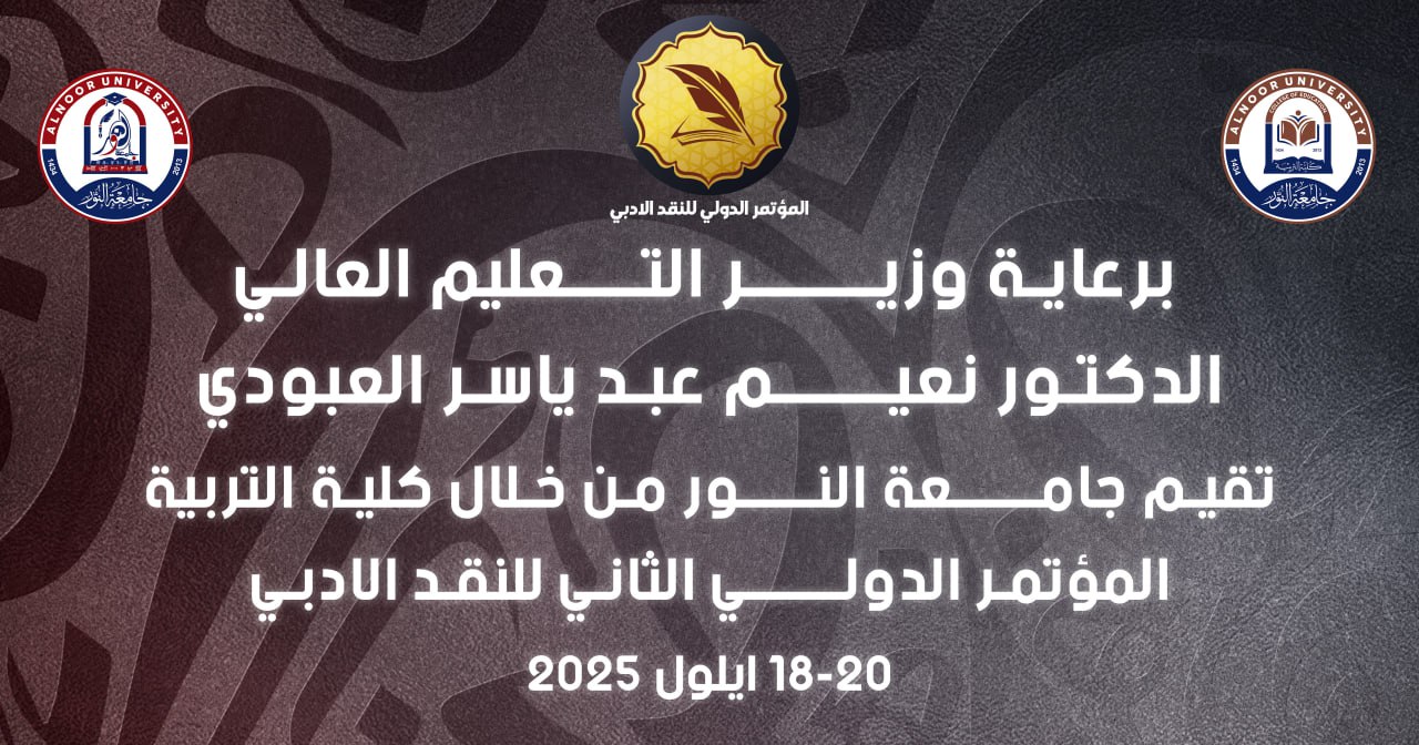 Under the patronage of His Excellency the Minister of Higher Education, Dr. Naeem Al-Aboudi, Alnoor University is preparing to launch the activities of its Second Critical Conference, which it is organizing. College of EducationOn the morning of Thursday, September 18, 2025, inside the university campus, the conference program will include an opening session followed by a scientific research session. The activities will resume on the morning of Saturday, September 20, 2025, with two research sessions, concluded by the university with a closing session summarizing the key ideas and visions presented.