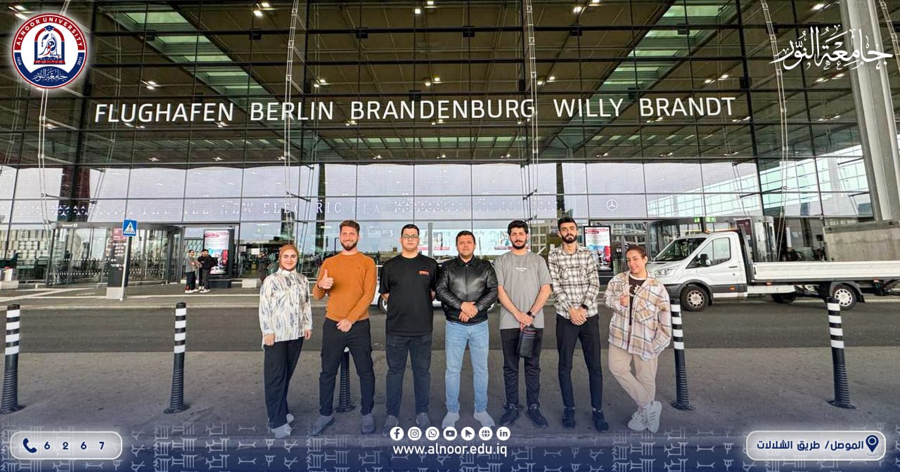 On the third day of their stay in Germany, the Iraqi Cultural Heritage Digitization Team from Alnoor University visited Brandenburg University in Germany, where they were introduced to its scientific facilities and lecture halls. A meeting was also held with the university administration, during which an overview was given of its undergraduate and postgraduate programs, along with an explanation of the academic disciplines and scholarships it offers to students. The meeting also discussed details of the upcoming exhibition program and the organization of communication mechanisms between the two sides to ensure the success of the participation and the achievement of the desired goals.