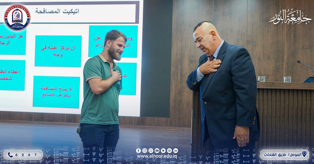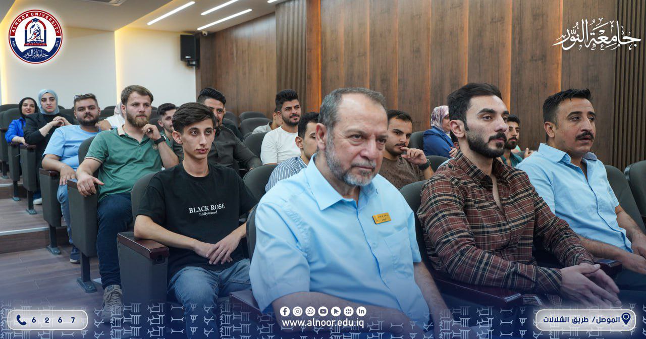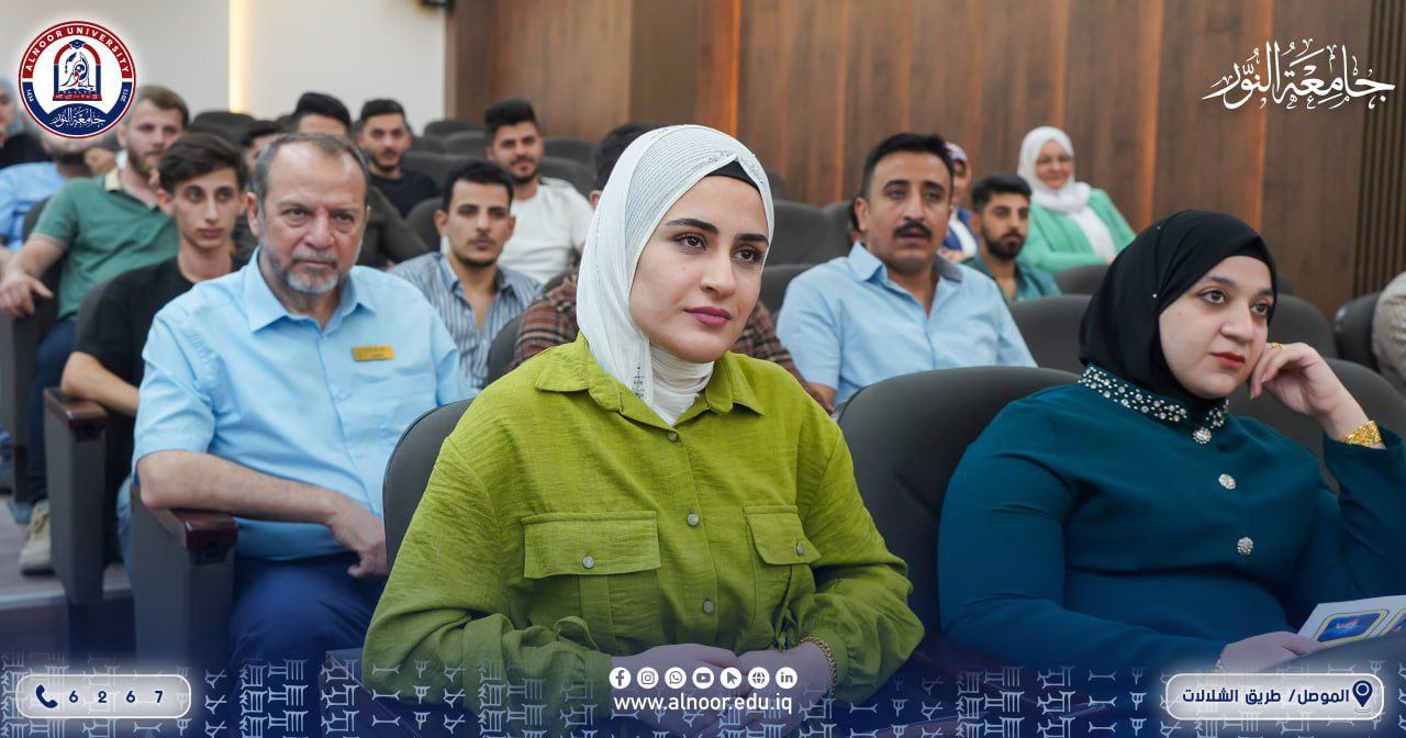 The seminar was held under the patronage of the President of Alnoor University, supervised by the Student Activities Department / Cultural Activities Division, and was lectured by Mr. Majdi Waad.