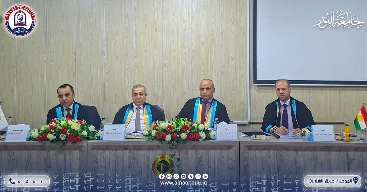 The Assistant Professor Dr. Bashar Rashid Hussein, Assistant Dean, participated College of Law and Political Science For Scientific Affairs at Alnoor University, on Wednesday, October 15, 2025, as a member of the examination committee for the master’s student Dalan Ramadan Saadallah for his thesis submitted to the College of Law at the University of Duhok, entitled: