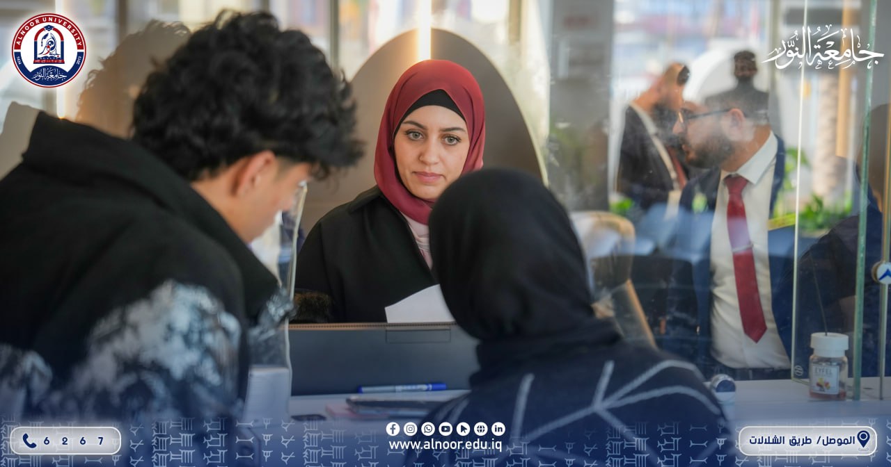 The Registration and Student Affairs Department at Alnoor University is witnessing an increasing influx of high school graduates and their families, amid active movement and noticeable congestion at the department’s counters. This activity is being directly monitored by the university president ,Professor Dr. Yassin Taha Alhajjar,who conducts field visits to observe the workflow and facilitate procedures