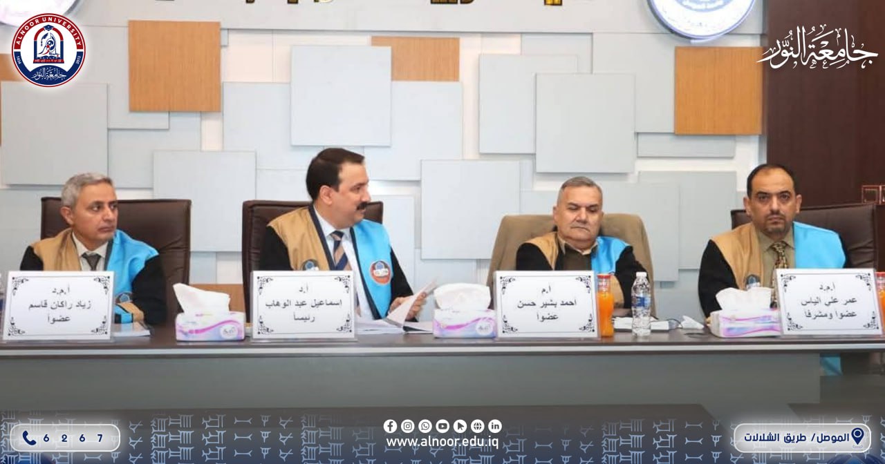 The scientific assistant to the President of Alnoor University chairs the master's thesis defense committee at the University of Mosul