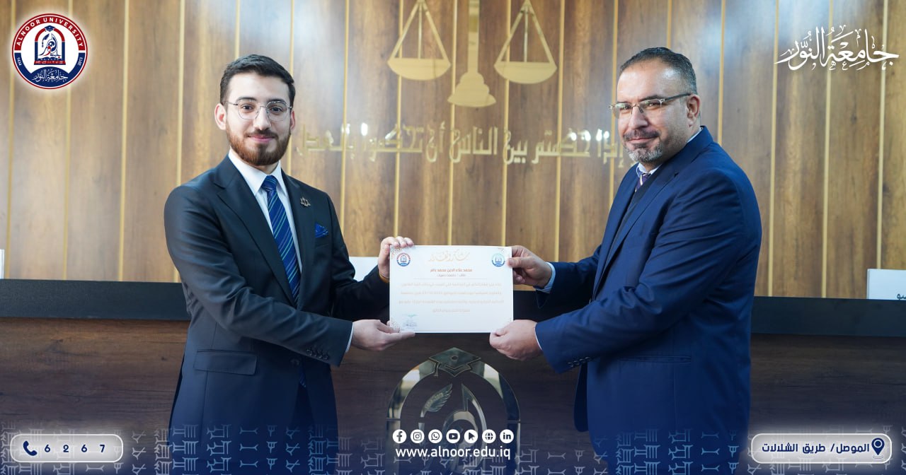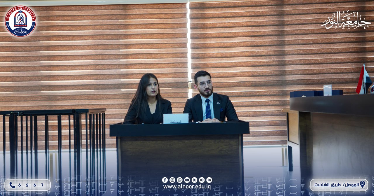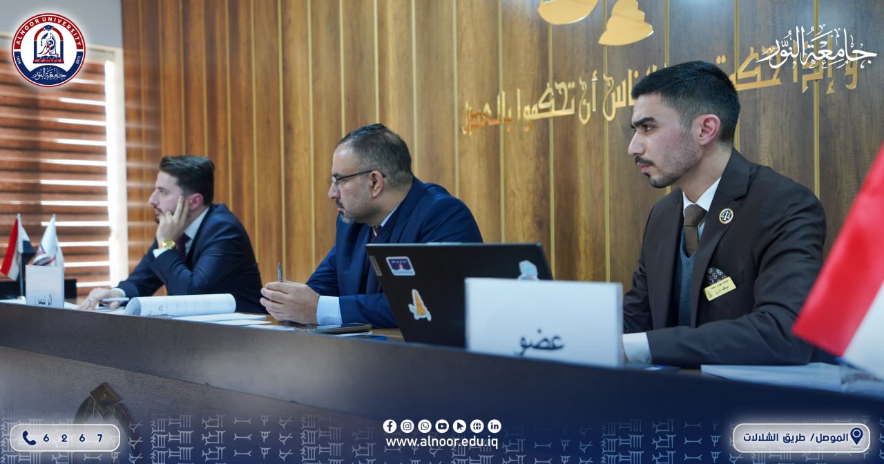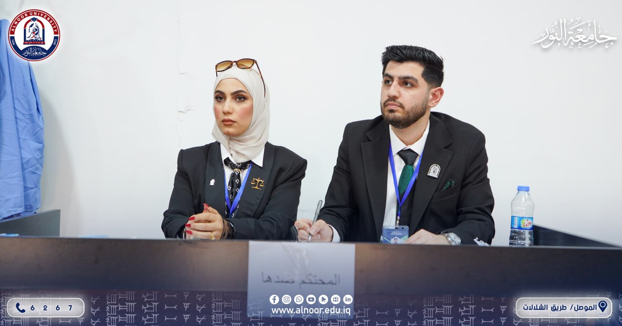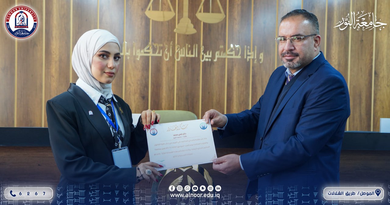 As part of strengthening students’ practical performance and within the International Commercial Arbitration Competition, hosted College of Law and Political Science At Alnoor University, represented by the Dean Assistant professor Dr. Ahmed mustafa ali The team of the College of Law at the University of Duhok, where a moot court was held between the two colleges’ teams, contributed to strengthening the practical dimension of the students’ academic knowledge. The above-mentioned participation demonstrated the distinguished role and diligent efforts made by the students and their coaches, in addition to their accurate responses to the questions of the arbitration panel, while adhering to both substantive and formal requirements, thereby highlighting the distinguished standing of the Iraqi universities participating in this competition. This comes as a result of the continuous support and follow-up by the Dean of the College of Law and Political Science, Assistant Professor Dr. Ahmed Mustafa Ali, and the efforts made by the international coaches Ahmed Saad and Mohammed Mahdi to ensure securing the qualification ticket for the in-person pleadings scheduled to be held in the Kingdom of Saudi Arabia.