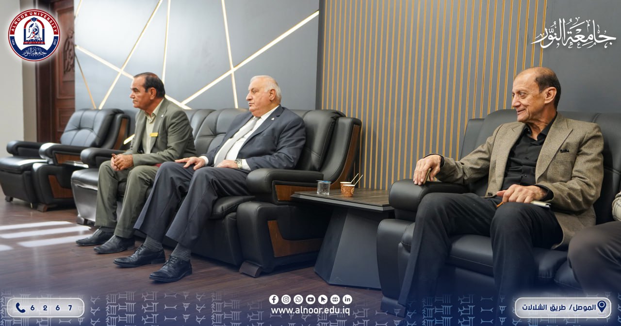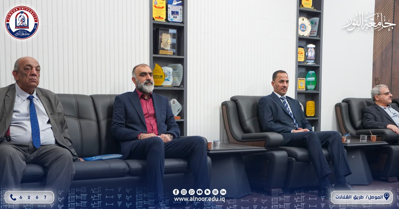 The President of Alnoor University was there to receive the delegation ,Professor Dr. Yassin Taha Alhajjar,During the meeting, discussions were held about the current state of the college and the developments it is witnessing, in addition to reviewing its efforts in updating programs and the academic scene
