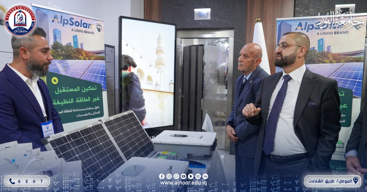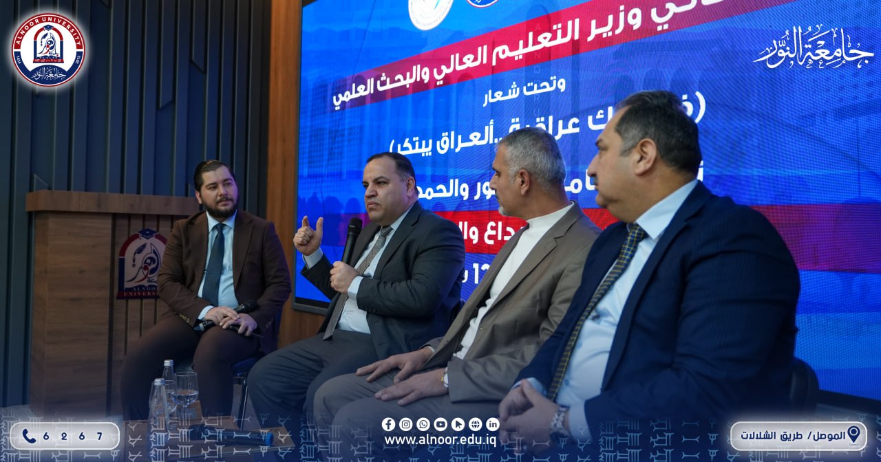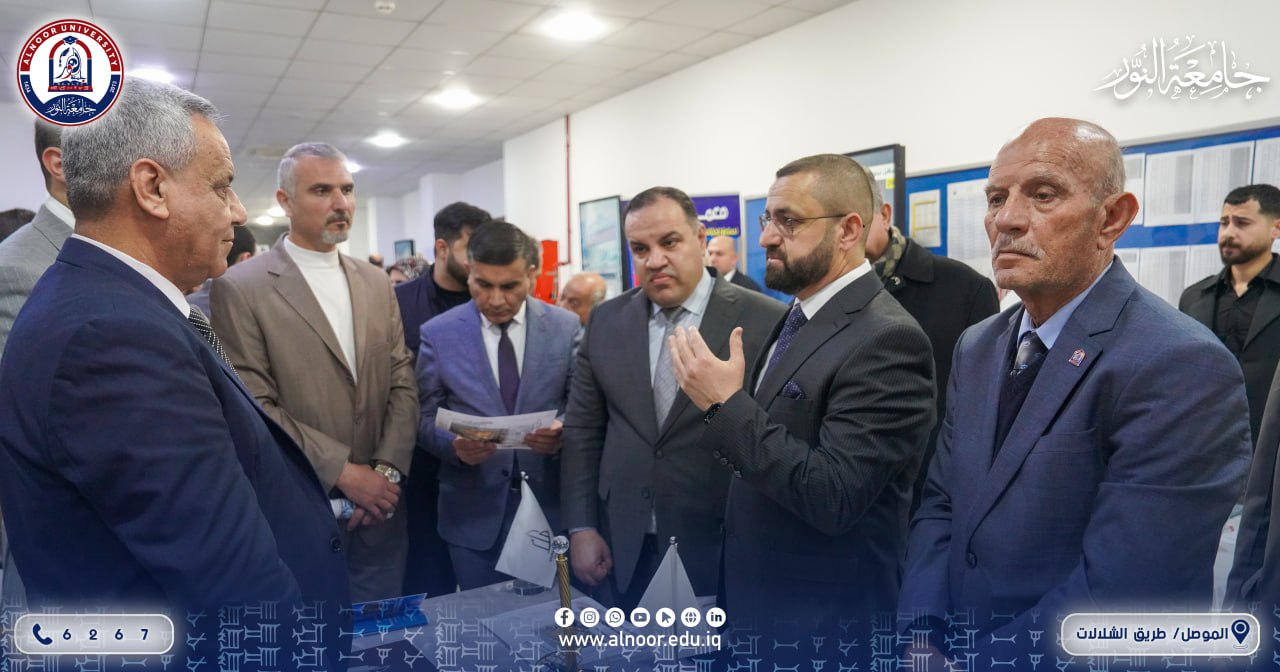 In the presence of Prof. Dr. Yaseen Taha Alhajjar, On its third day, Tuesday 10/2/2026, the activities of Innovation and Entrepreneurship Week continued at the University of Alnoor, under the patronage of the President of Alnoor University and Dr. Bashar Mahmoud Ali, Chairman of the University’s Board of Trustees. The week is being held in cooperation between Alnoor University and Alhamdaniya University. This day was dedicated to building entrepreneurial ecosystems in terms of mentoring and funding, through four specialized workshops conducted by local partners to discuss the relationship between the university and the industrial sector. The program also included three dialogue sessions with decision-makers, presentations of success stories, discussions with project funders, and training sessions for the Hackathon competition related to the digitization of heritage. In addition, the university’s academic departments continued to organize sessions, lectures, and activities under the umbrella of the week’s theme. The third day was marked by the attendance of the Assistant President of Alnoor University for Scientific Affairs, the Director General of Nineveh Education and his Administrative Assistant, the President of the Nineveh Chamber of Industry, and the Scientific Advisor to Alnoor University.