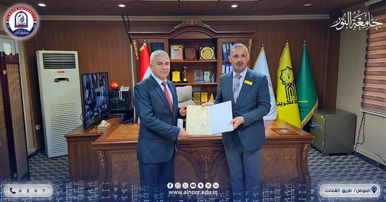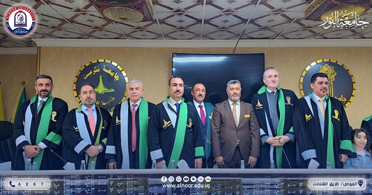 Assistant Professor Assistant Professor Dr. Ahmed Mostafa Ali,Dean of the College of Law at College of Law and Political Science At Alnoor University, on the morning of Tuesday, 17/2/2026, as a member of the PhD defense committee at the College of Law, University of Tikrit, for Jamil Abdullah Abdul Fattah, on his dissertation entitled (The Role of United Nations Teams in Criminal Investigation)