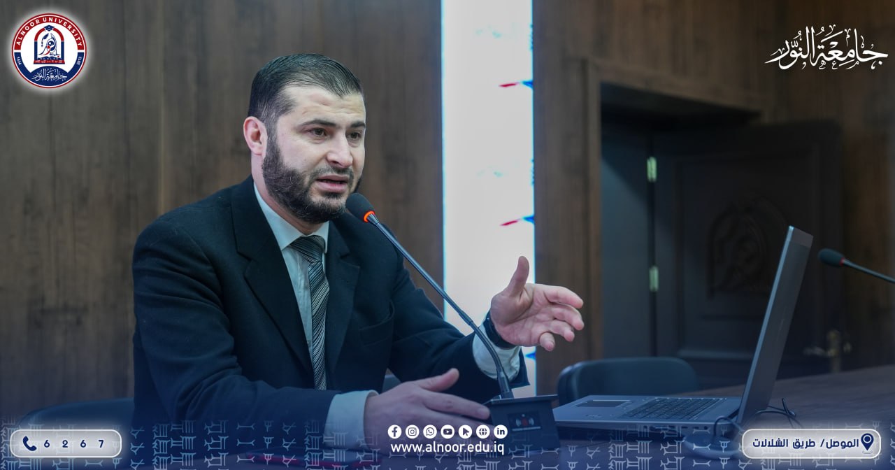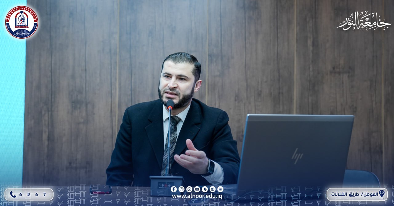 As part of its series of scientific and cultural activities that coincide with the atmosphere of the holy month of Ramadan, the Department of Digital Media organized College of arts at Alnoor University, in the presence of Professor Dr. wael alnahas The Dean of the College delivered a Ramadan lecture on the morning of Saturday 28/2/2026 entitled (Ramadan: Creating a Balance Between Academic Excellence and Spiritual Growth,) which was presented by Dr. Karam Mudhafar Aljassim, a lecturer in the department.
