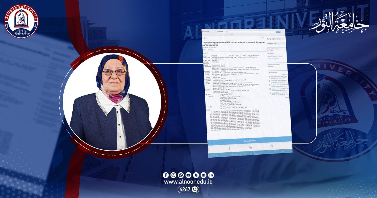 تمكنت Dr. muna taher mohammed, الاستاذة المساعدة في قسم تقنيات المختبرات الطبية في College of Health and Medical Technologies, بجامعة النور ضمن فريق مشترك مع كل من الاستاذة الدكتورة سندس نذير الكلاك والاستاذة الدكتورة ايمان غانم سليمان التدريسيتين في جامعة الموصل ،من عزل سلالتين جديدتين في محافظة نينوى وتسجيلهما