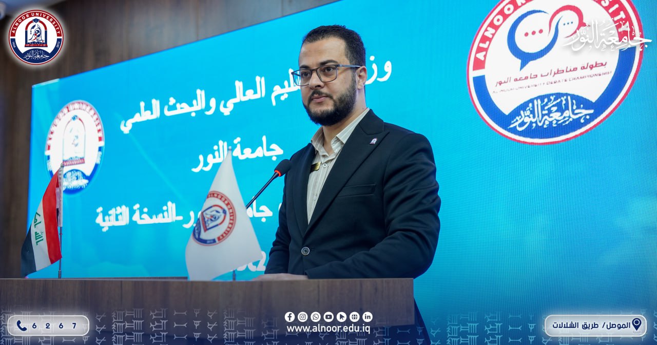 أقام نادي المناظرات بالتعاون مع قسم النشاطات الطلابية في جامعة النور صباح يوم الثلاثاء الموافق 2026/3/17 النسخة الثانية لمناظرات جامعة النور (دورة وبطولة) بإشراف المدرس المساعد سعد صالح ذياب، وبمشاركة عدد من طلبة كليات الجامعة.